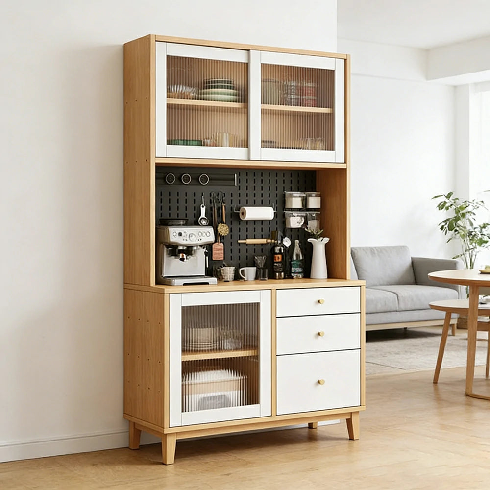 LUXORA 80/120/160cm Kitchen Hutch Cabinet - Tempered Glass Sliding Doors with Solid Pine Construction, Pegboard Storage & Modular Design - White