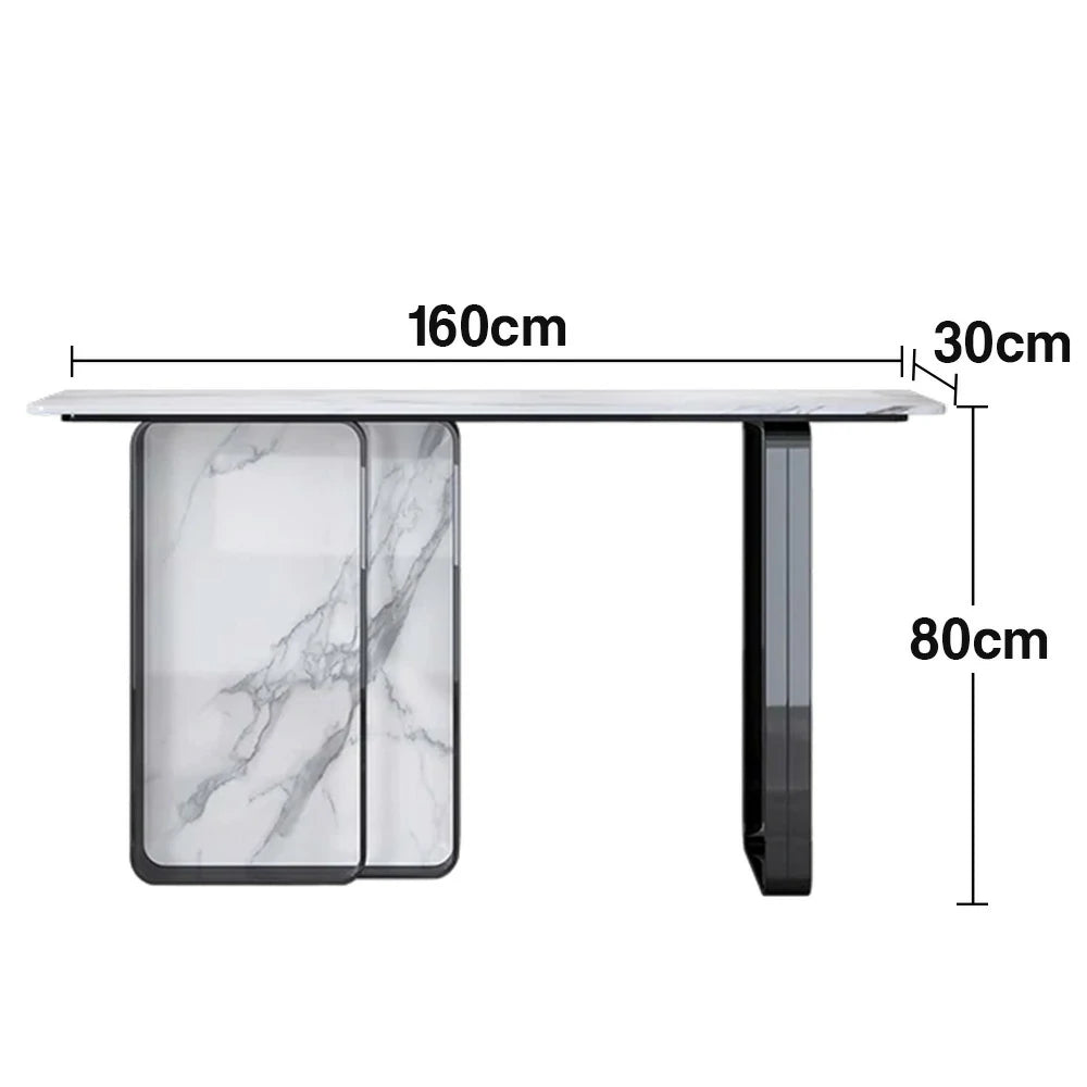 LUXORA 140/160cm Dining Table Ultra-Slim High-End Sintered Stone with Carbon Steel Frame - Silver&White