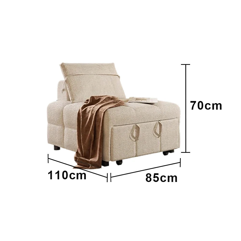 LIVARA 85/105cm Convertible Sherpa Sofa Bed, 3-in-1 Single Sleeper Chair, Ergonomic Support, Space-Saving Design for Small Homes - Cream