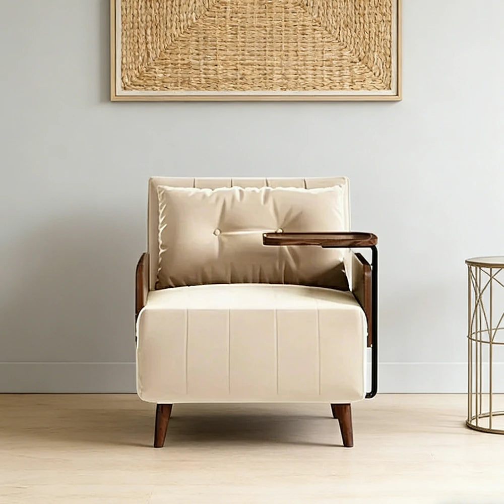 LUXORA Modern Cat-Scratch Fabric Armchair, Solid Walnut Wood Frame, Compact Single Sofa for Small Spaces - White