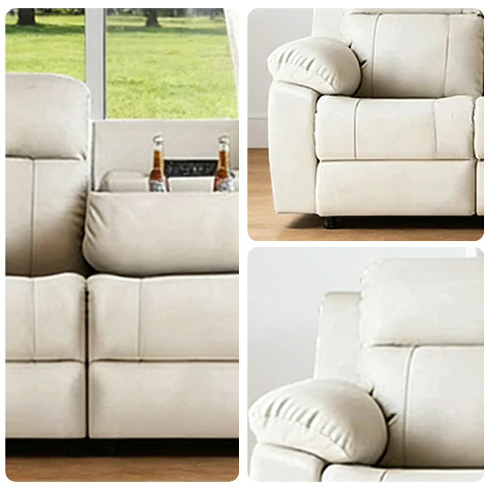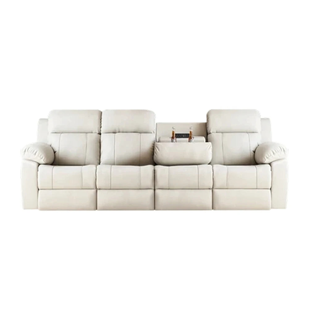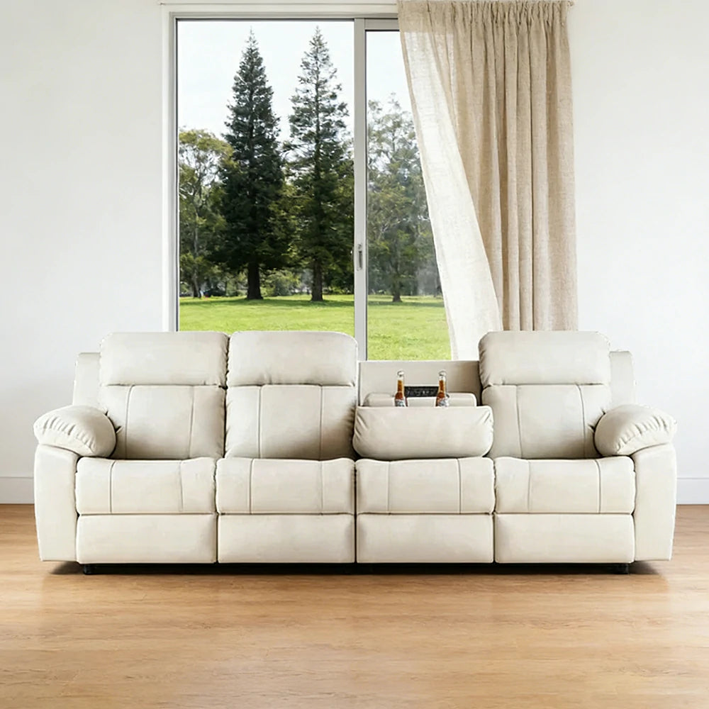 LUXORA 280/320cm 4-Seater Electric Recliner Sofa Wide-Angle Adjustment Premium Imported Leather 7D Fibre Comfort Support with Centre Backrest Console Table - Beige