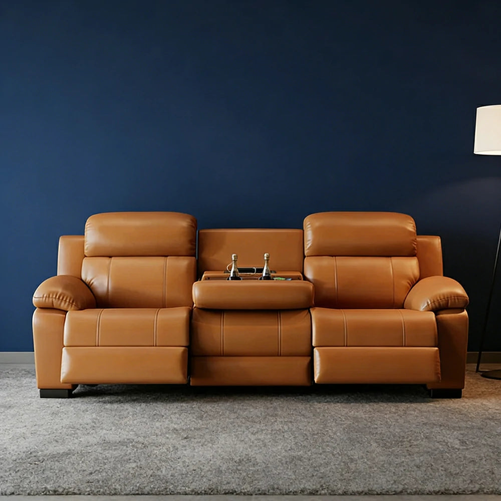 LUXORA 220/250cm 3-Seater Electric Recliner Sofa Wide-Angle Adjustment Premium Imported Leather 7D Fibre Comfort Support with Centre Backrest Console Table - Brown