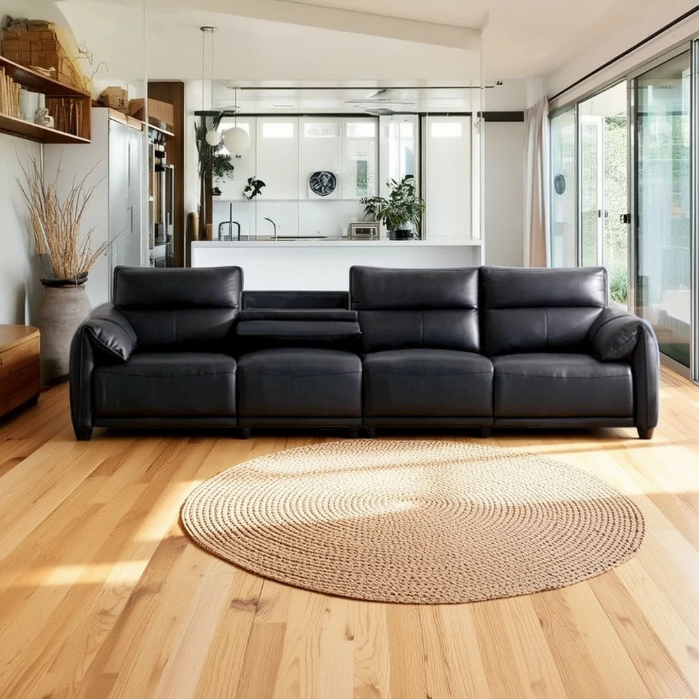 LUXORA 322/362cm Triple Electric Recliner Sofa 4-Seater Flip-Back Center Genuine Leather Zero-Wall Comfort Design - Black
