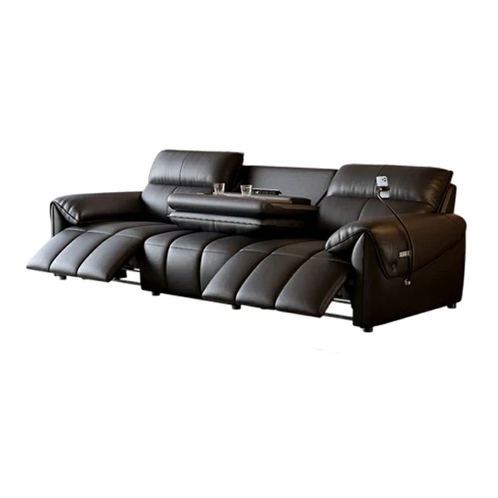 LUXORA 252/282cm Dual Electric Recliner Sofa 3-Seater Flip-Back Center Genuine Leather Zero-Wall Comfort - Black