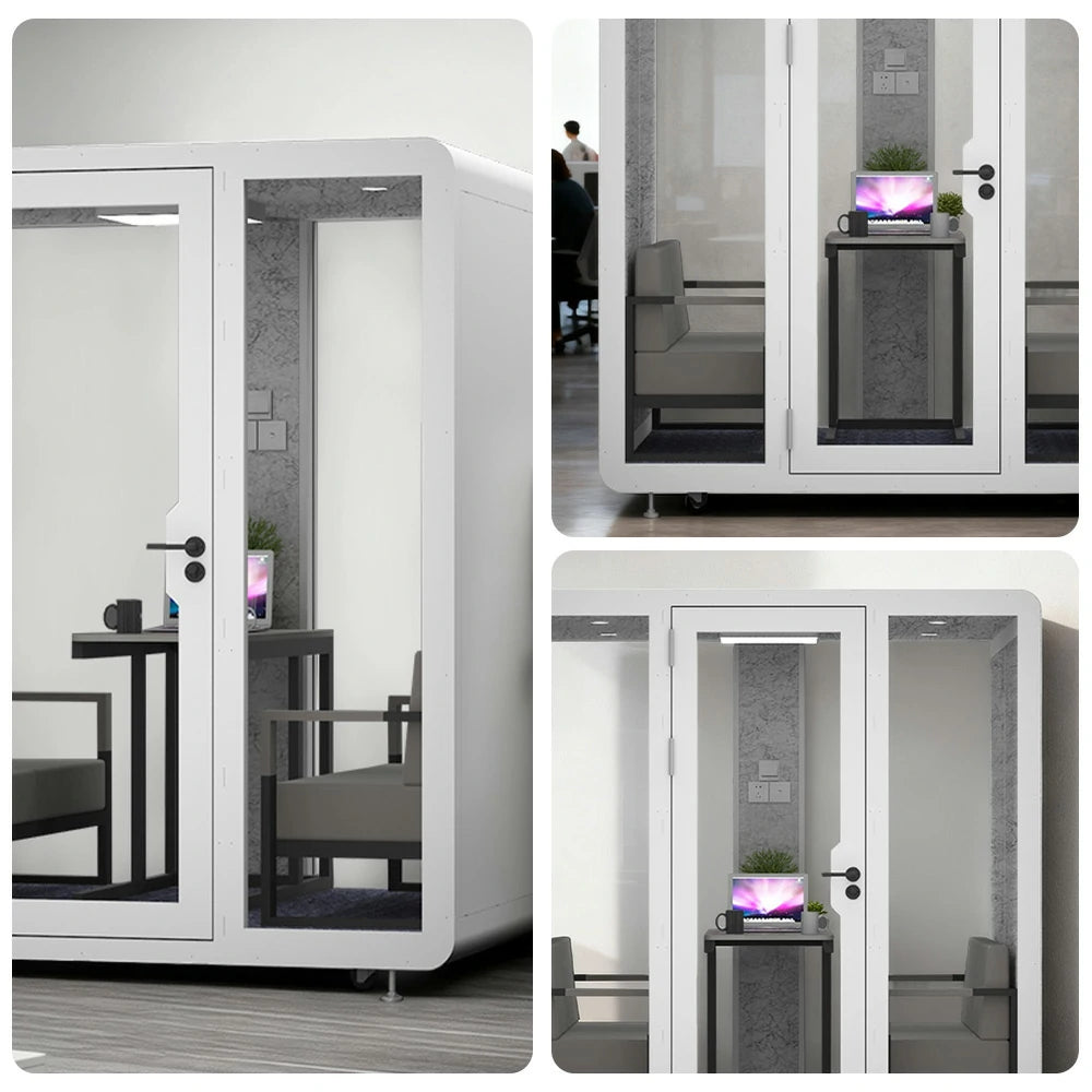 MODERA BJK-201821 Steel Panel 2.0x1.8m Soundproof Office Meeting Booth w/ Lighting, Ventilation & Casters - White