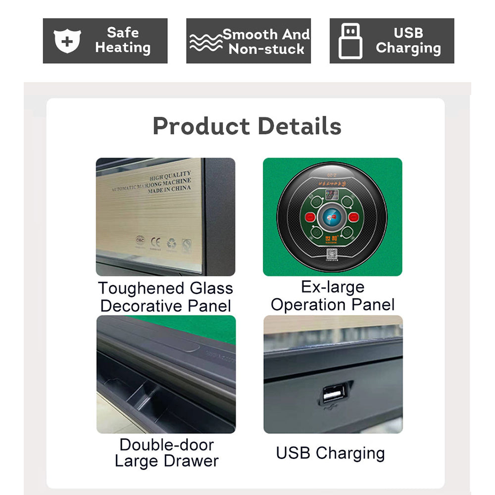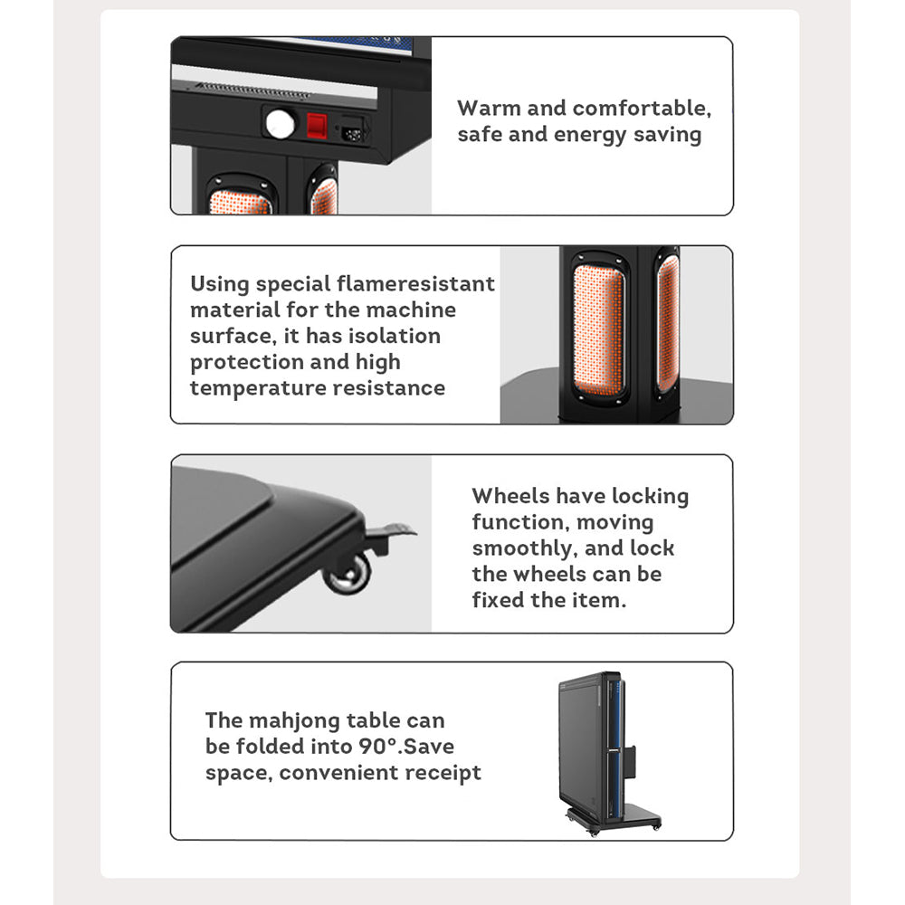 SHIHE G600 Heating Foldable Mahjong Table and 4*Chairs W/ Cover Plate and USB External Frame Comes Automatic Mahjong Table - Deep Blue