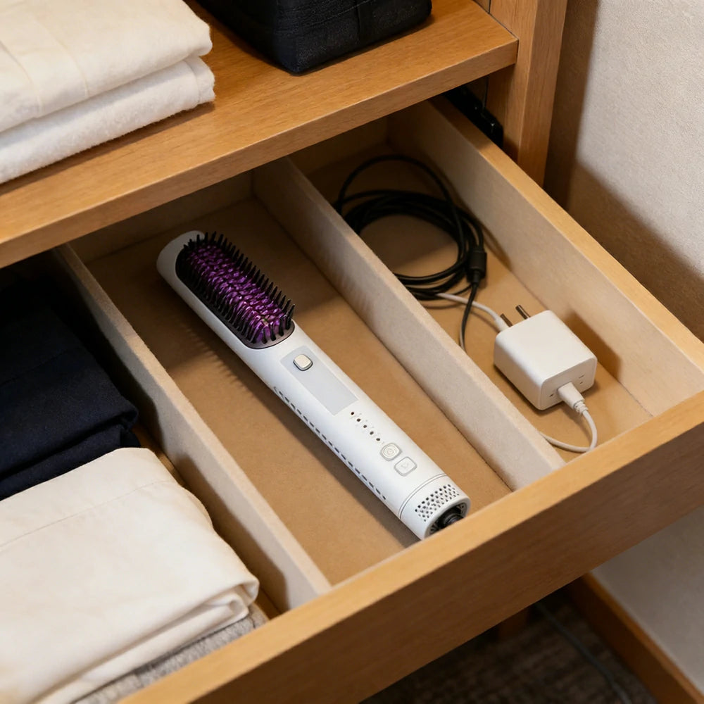 NEVORA 2-in-1 Hair Styling Brush Interchangeable Head with Negative Ion Technology Ceramic Glaze Curved Design - Blue
