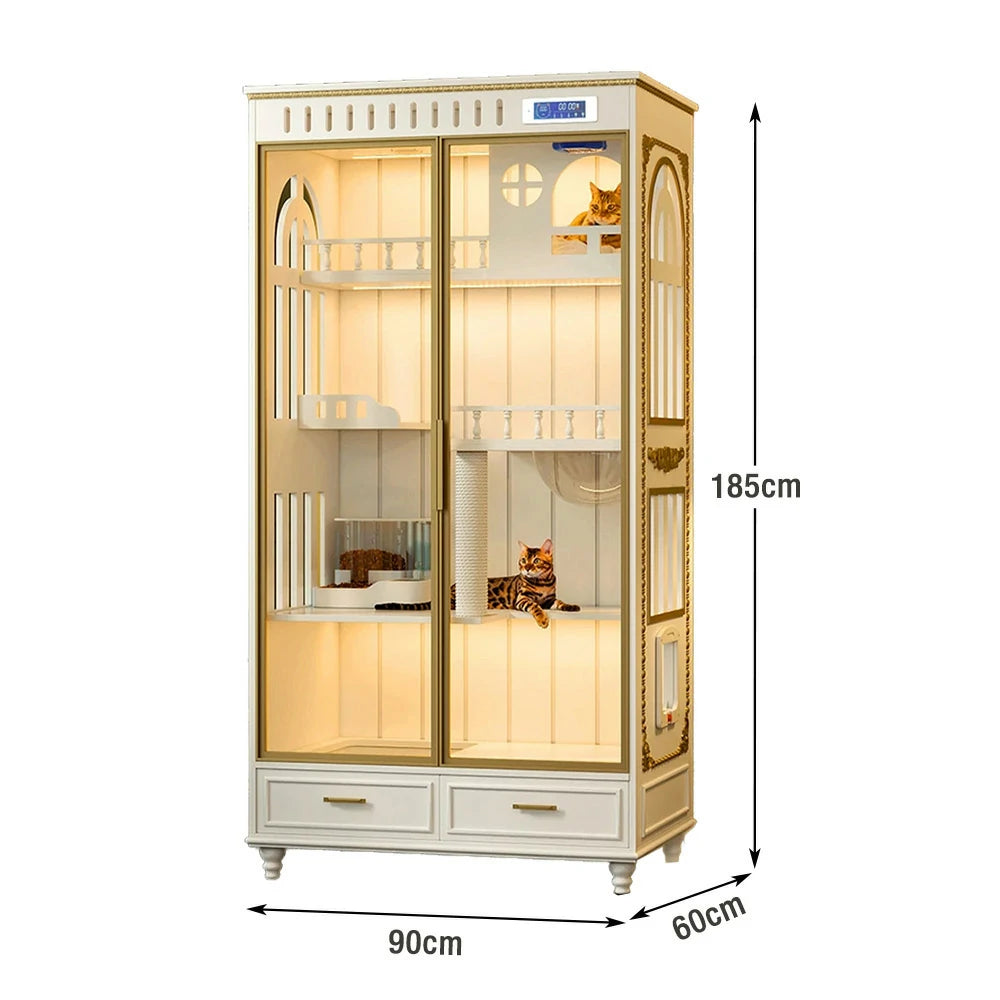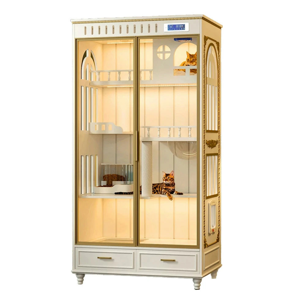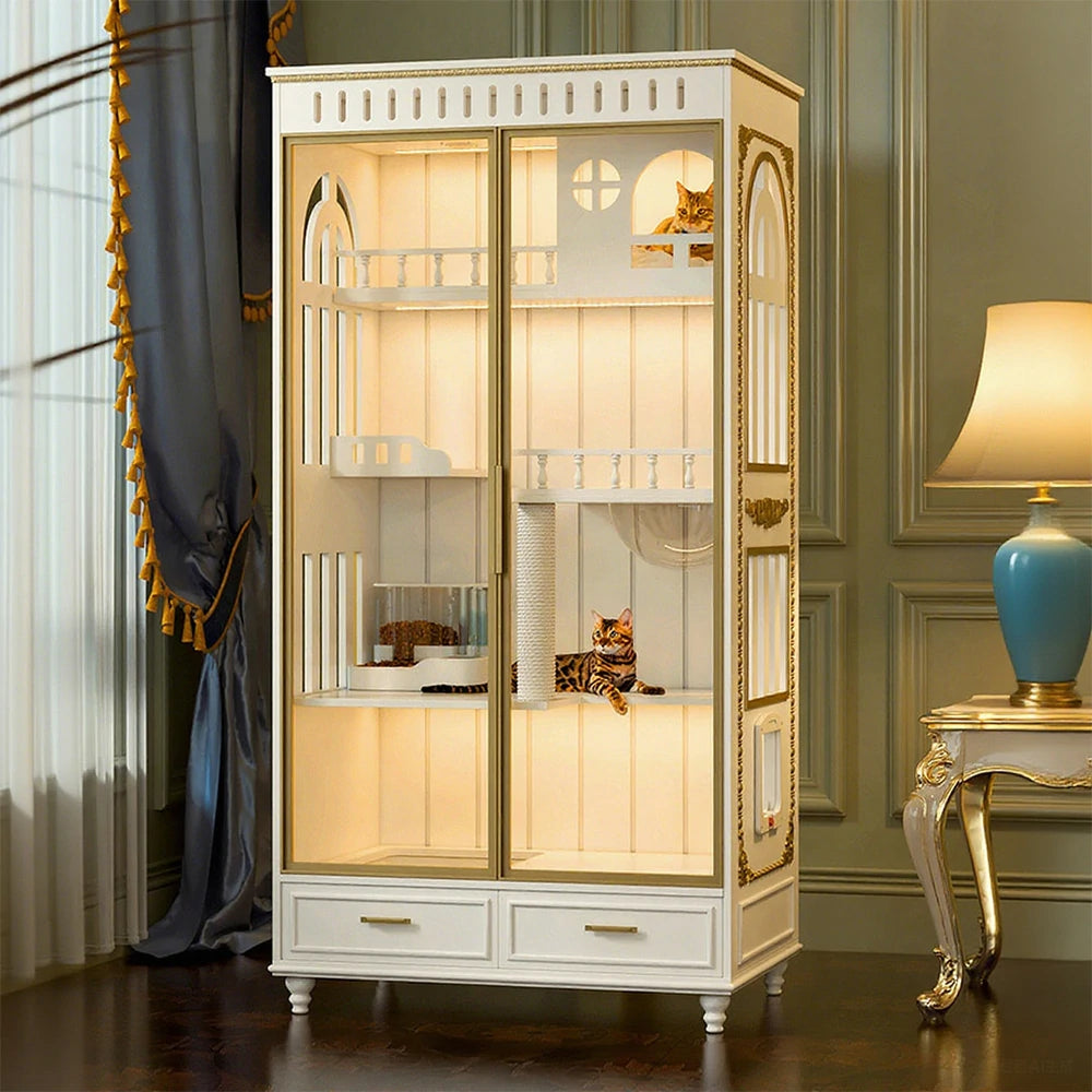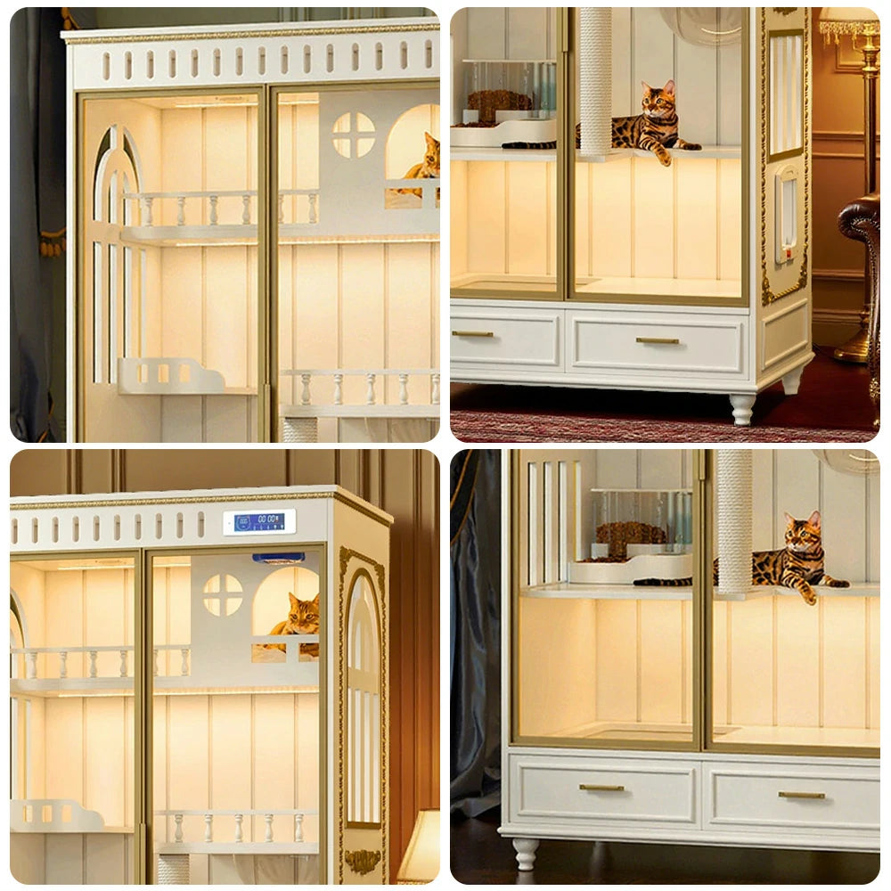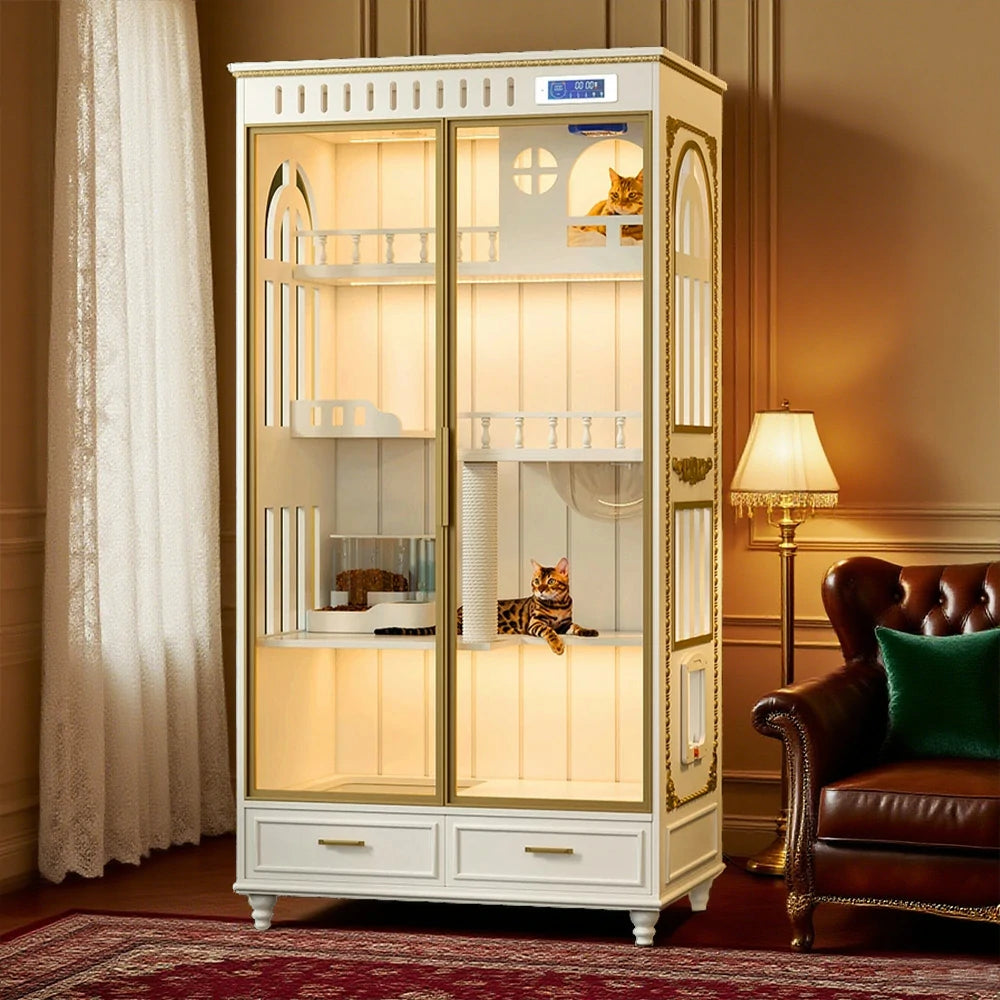 PAWORA European Style Indoor Cat House – Painted Modern Grey Finish, Eco-Friendly Board, Multi-Level Design with Storage Drawers - White