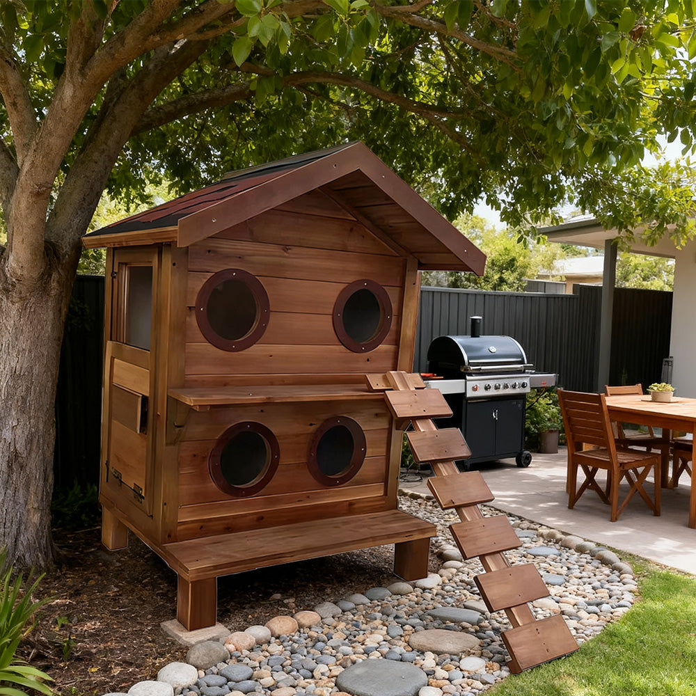 PAWORA Outdoor Cat House - Fir Wood Construction, Scratch-Resistant, Moisture-Proof, Ventilated with Waterproof Roof, All-Season Durable Pet Shelter - Wood