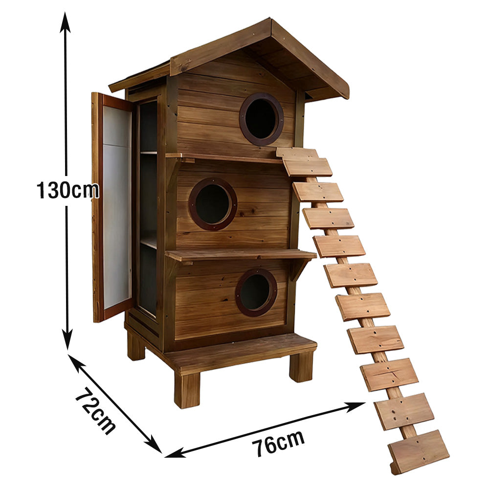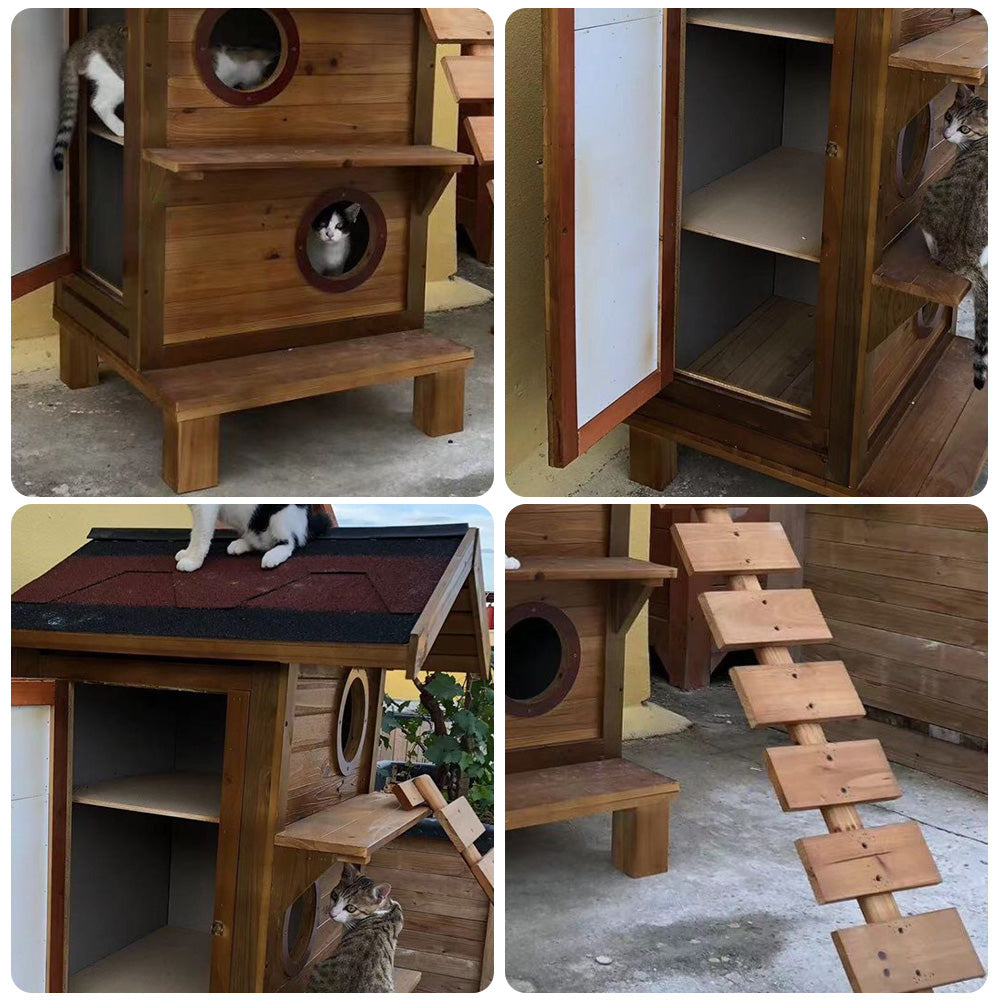 PAWORA Outdoor Cat House - Durable Fir Wood, Weatherproof Roof, Scratch-Resistant, Moisture-Proof, Ventilated Design, All-Season Safe Shelter for Pets