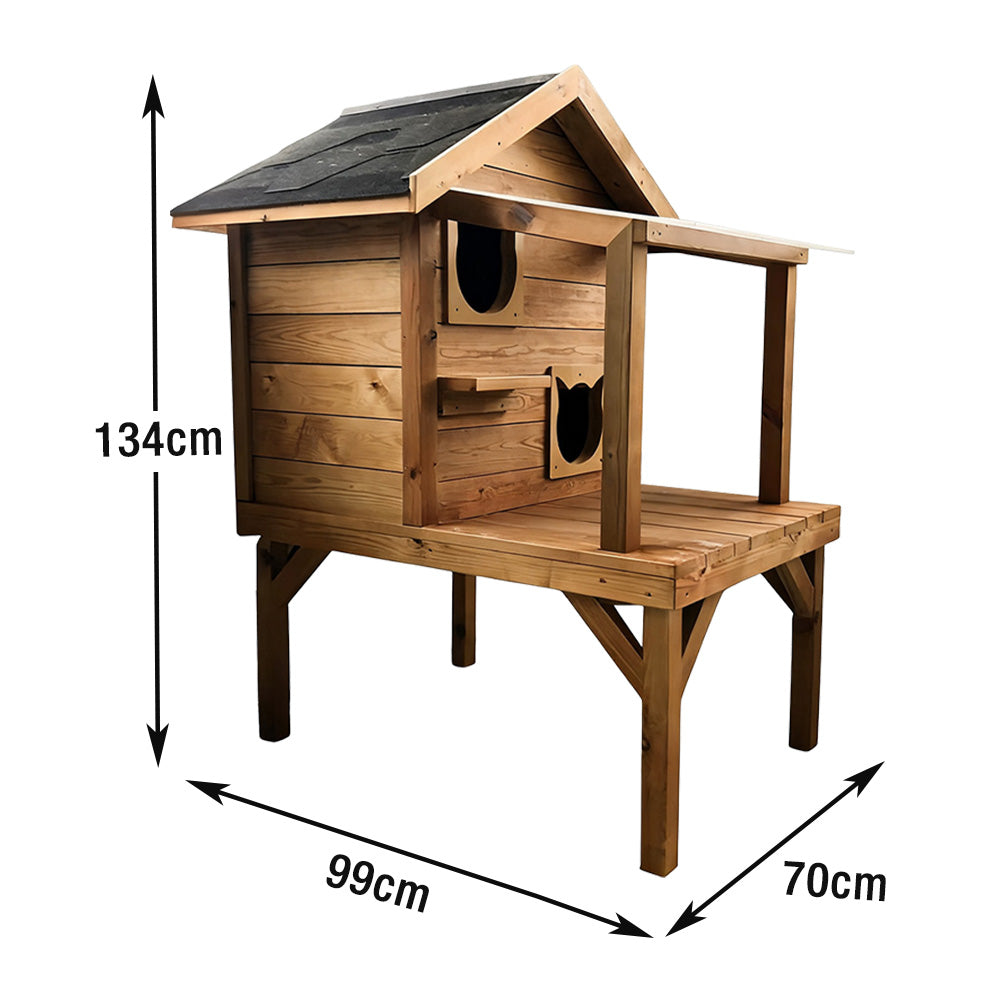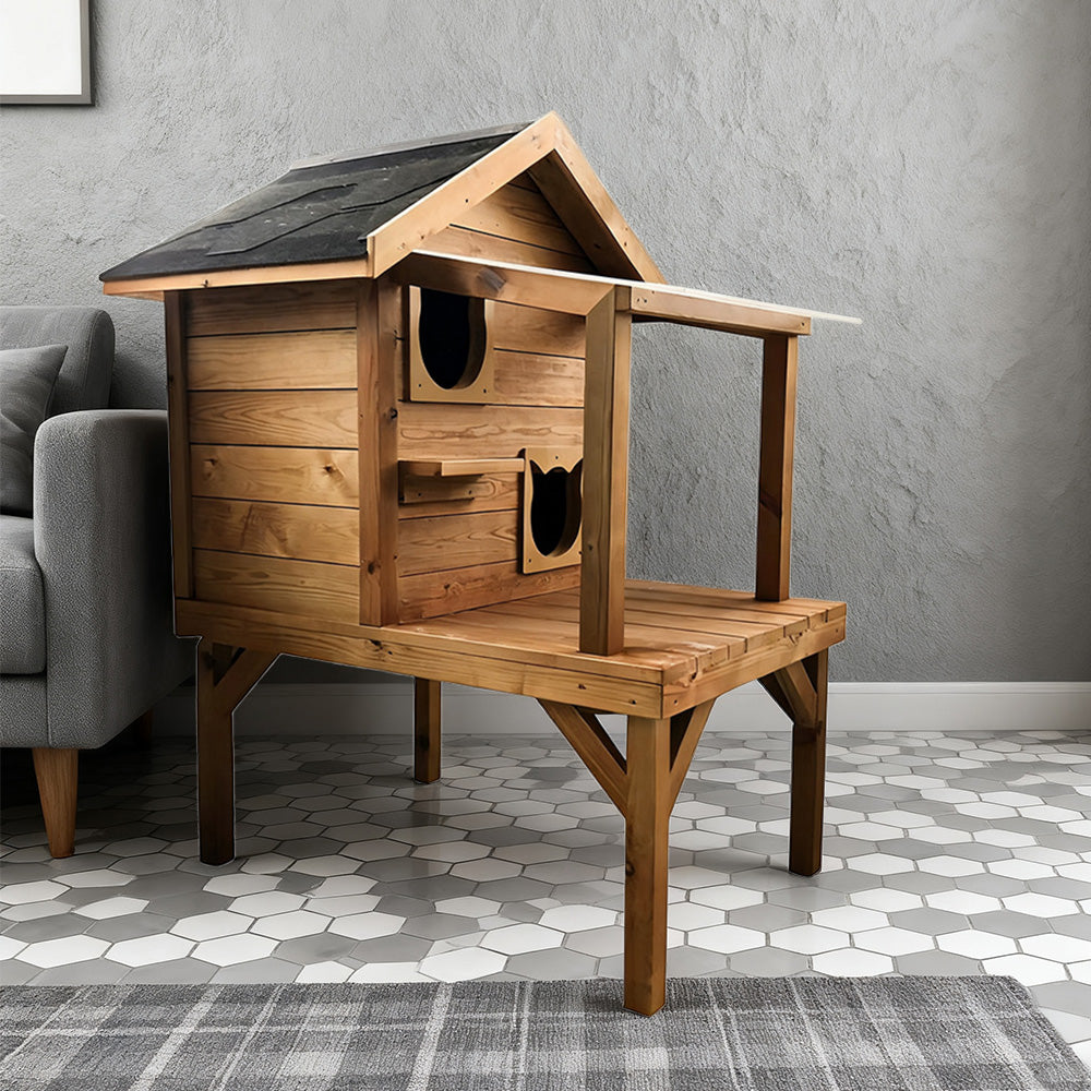 PAWORA Outdoor Cat House - Strong Fir Wood Build, Weatherproof Roof for Rain & Sun, Scratch and Moisture Resistant, Ventilated Structure, Safe All-Season Pet Shelter - Wood