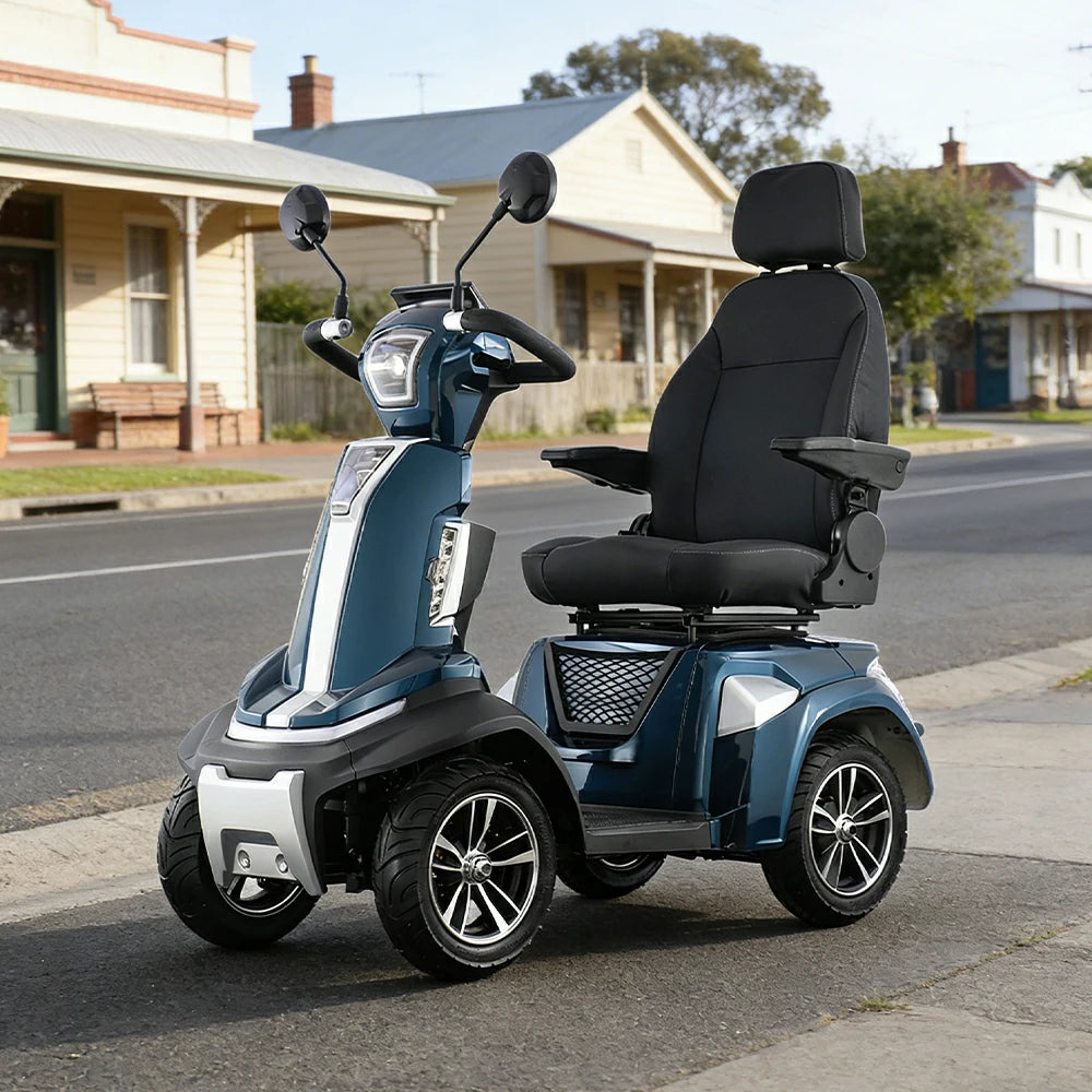 ROLLUX SPIRITE-3 Electric Mobility Scooter - Four-Wheel Stability, 48V 20Ah Battery, 40-45km Range, 20km/h Max Speed, Electromagnetic Brake, LED Lighting - Blue
