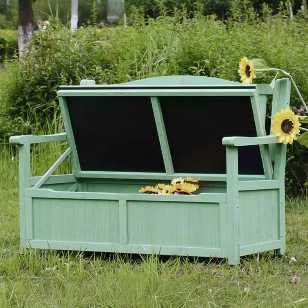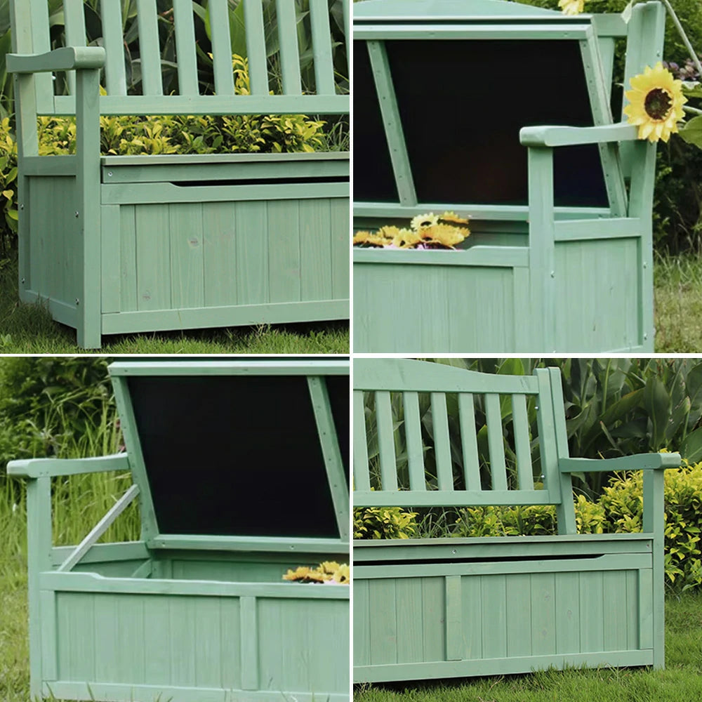 SOLARA Outdoor Storage Bench with Backrest - Durable All-Wood Frame, Waterproof Weather-Resistant Finish, Multi-Functional Seat & Storage Design - Green