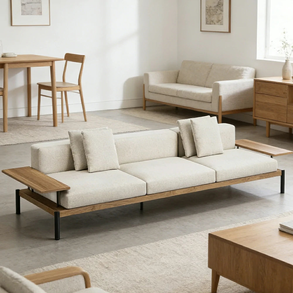 SOLARA Outdoor 3-Seater Sofa - Solid Teak Wood Frame, Waterproof Cushions, Aluminium Legs, Modern Patio Lounge Design - Natural