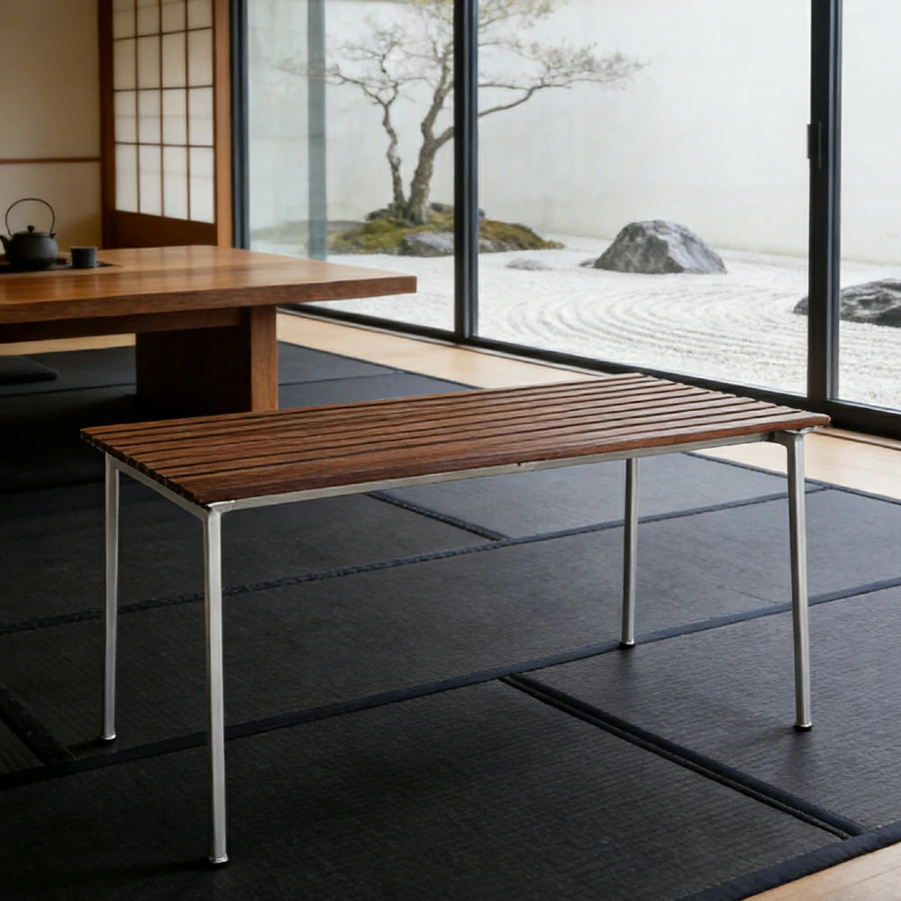 SOLARA Outdoor 140cm Table - Rust-Resistant Powder-Coated Frame - Solid Wood Slat Seat - Durable Patio & Balcony Seating