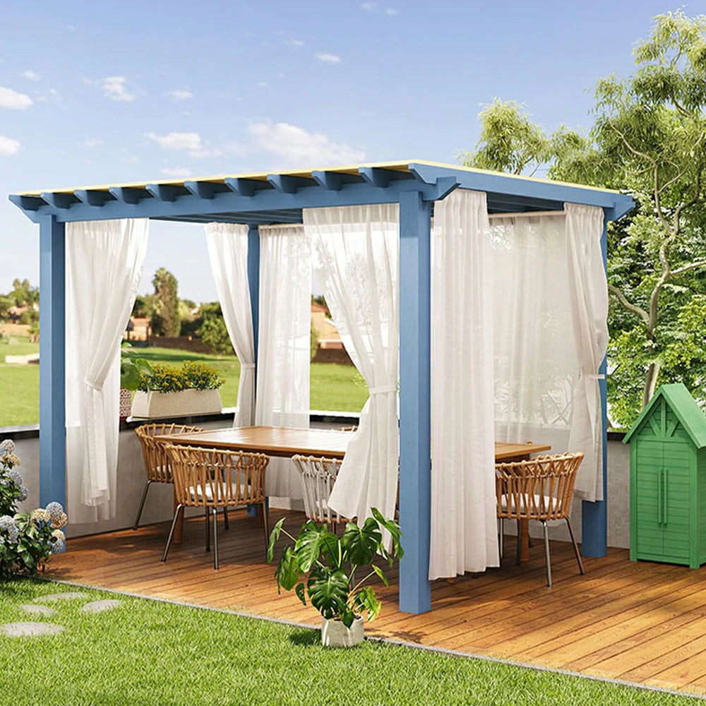 SOLARA Outdoor Pergola Canopy - Finnish Solid Wood Frame with Waterproof Curtain, 3m x 3m Garden & Patio Sunshade Pavilion - Blue