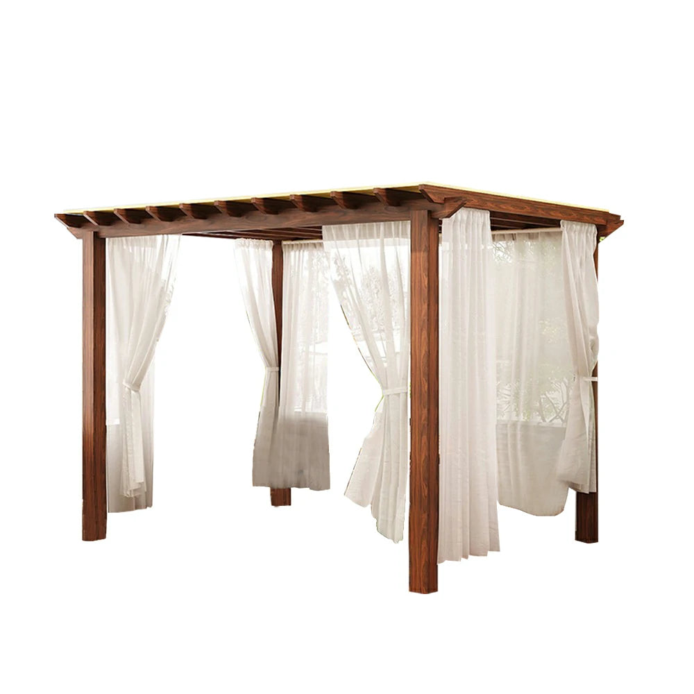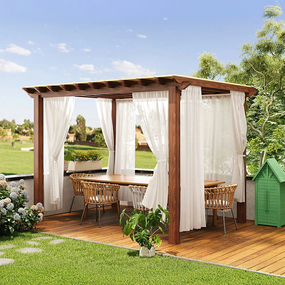 SOLARA Outdoor Pergola Canopy - Finnish Solid Wood Frame with Waterproof Curtain, 3m x 3m Garden & Patio Sunshade Pavilion - Brown