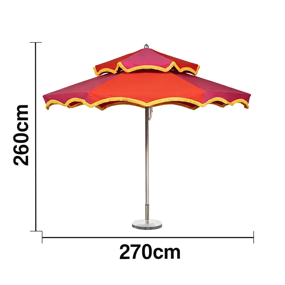 SOLARA Outdoor Patio Umbrella - 250/270cm Round Double-Layer Canopy with French Scalloped Valance, Enhanced Ventilation & Wind Resistance, Sunshade & Rain Protection, 20kg Marble Base Included - Pink & Red