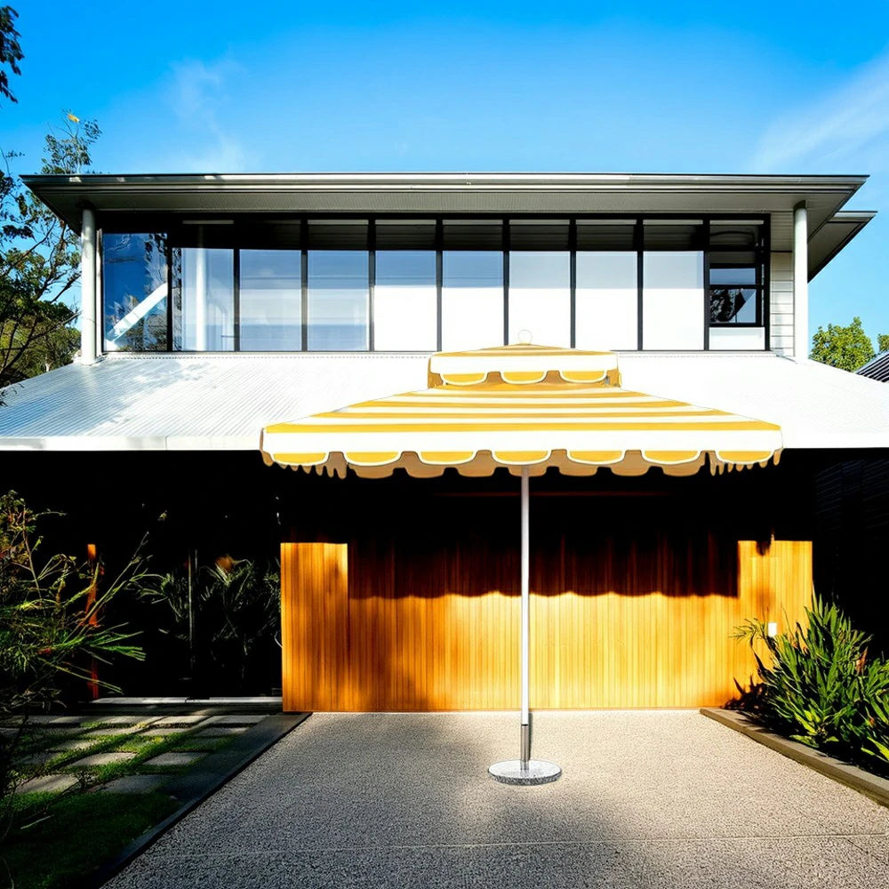 SOLARA Outdoor Patio Umbrella - 250/270cm Round Double-Layer Canopy with French Scalloped Valance, Enhanced Ventilation & Wind Resistance, Sunshade & Rain Protection, 20kg Marble Base Included - Yellow Striped