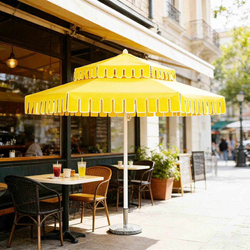 SOLARA Outdoor Patio Umbrella - 250/270cm Round Double-Layer Canopy with French Scalloped Valance, Enhanced Ventilation & Wind Resistance, Sunshade & Rain Protection, 20kg Marble Base Included - Yellow