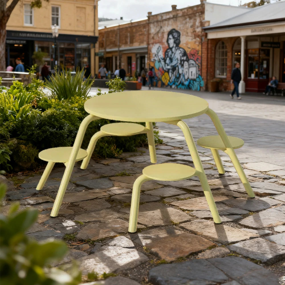 SOLARA Carbon Steel Table & Chair Set 3/4-Seater Ergonomic One-Piece Design High-Temp Coated Finish Stable Load-Bearing Structure - Yellow