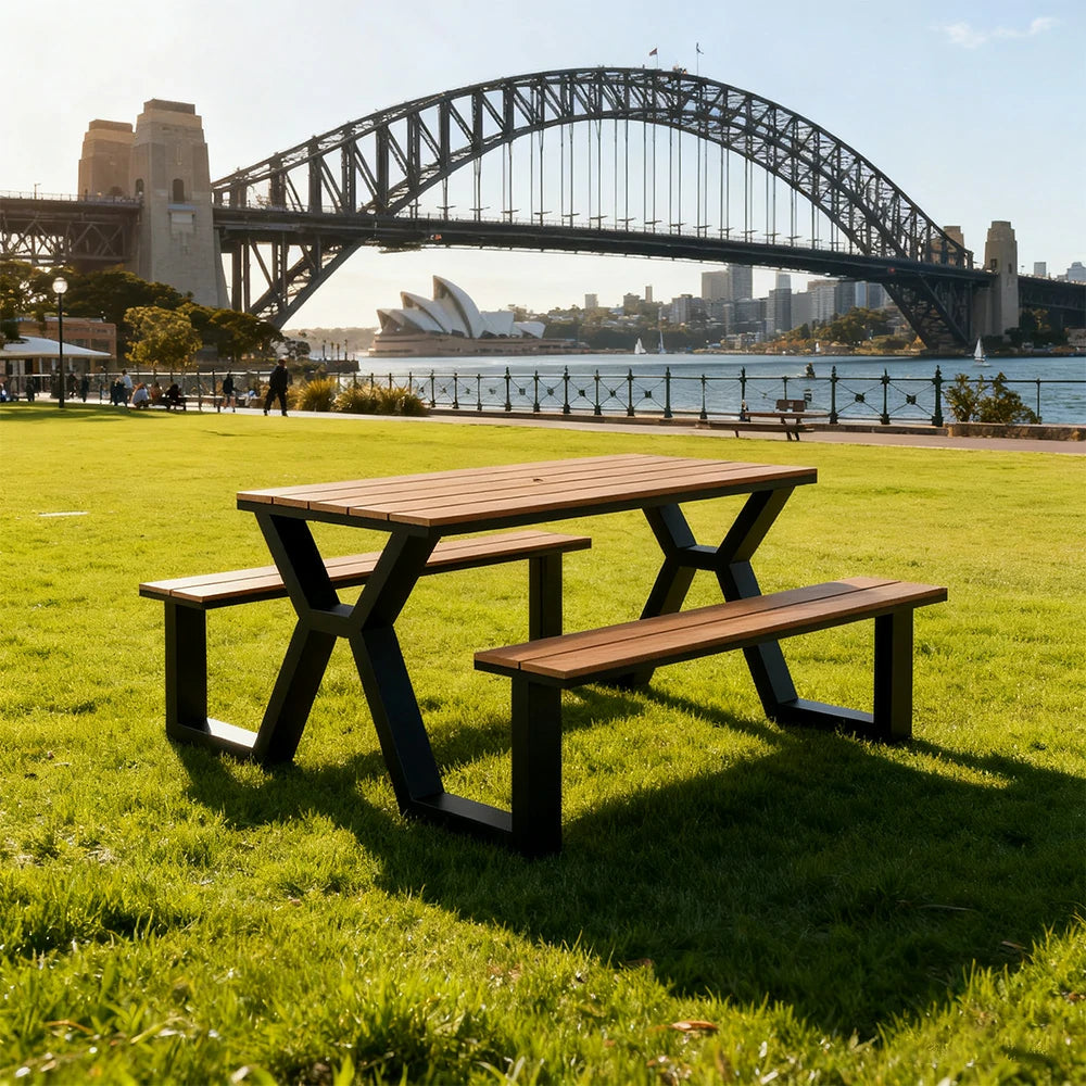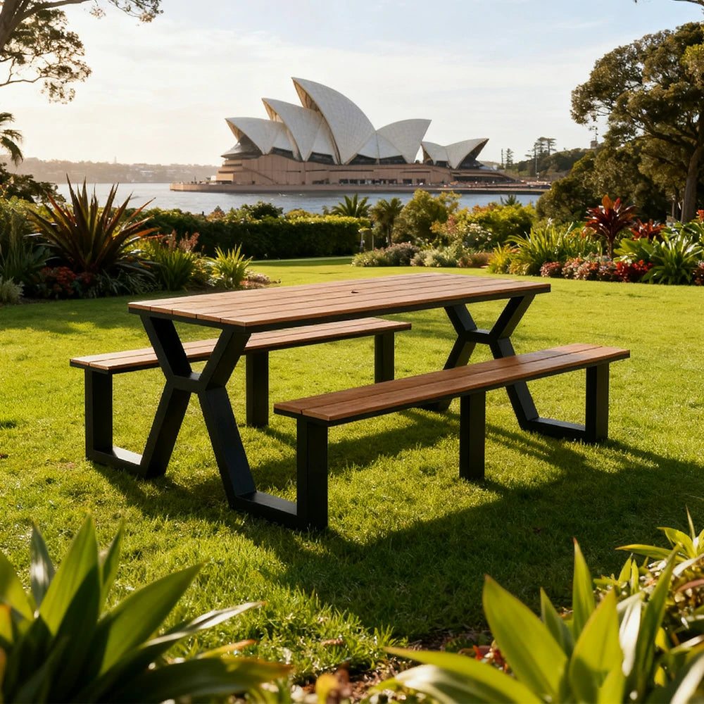 SOLARA Outdoor Table & Chair Set 120/160/200cm Eco-Friendly Waterproof Sunproof Plastic-Wood Surface Durable Anti-Oxidation Steel Frame - Black