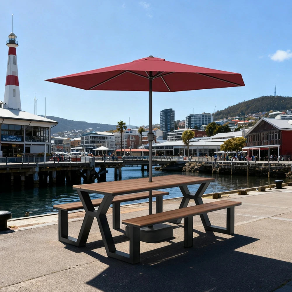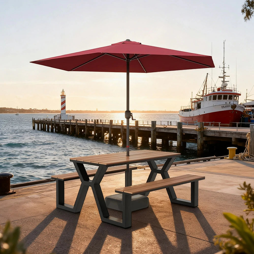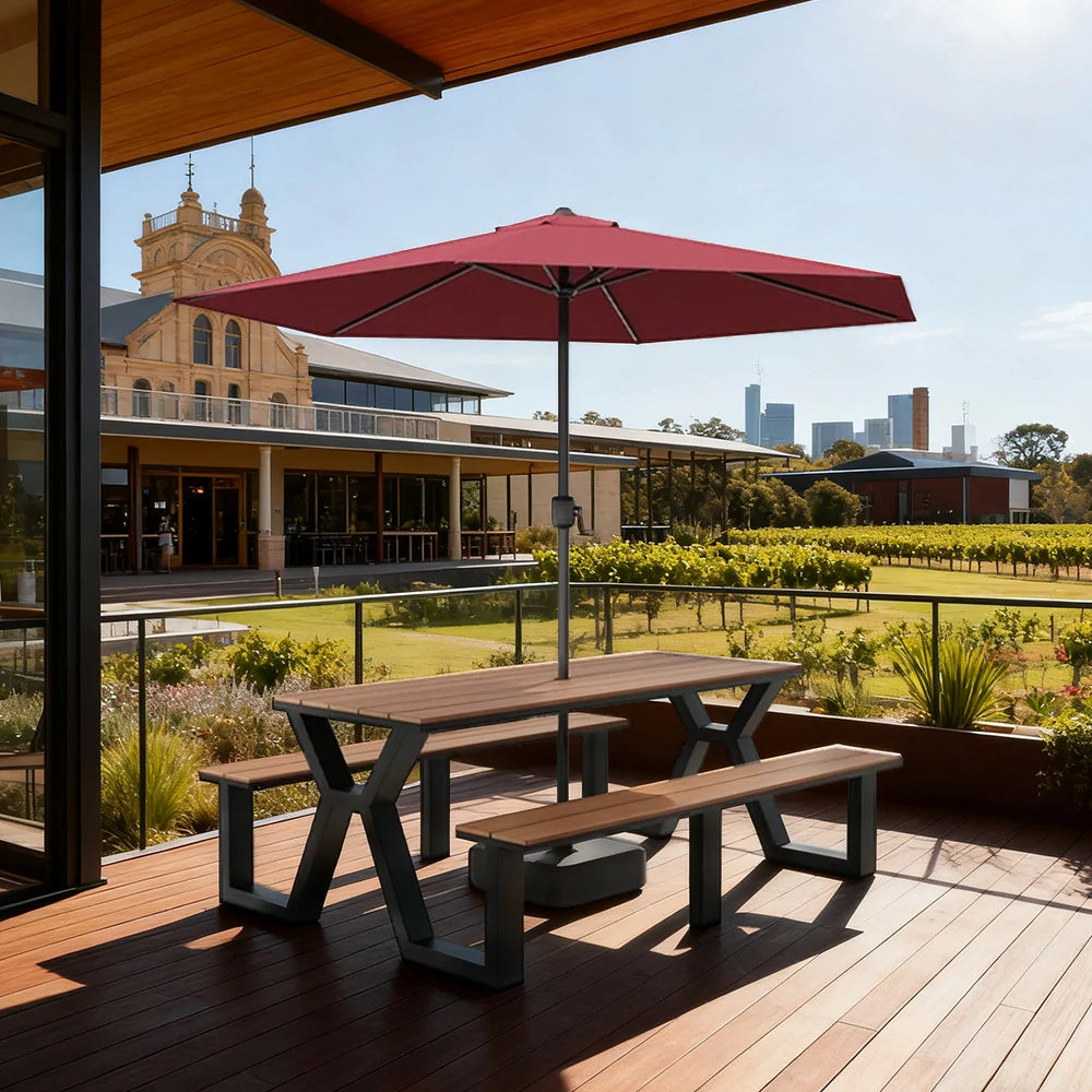 SOLARA Outdoor Table, Chair & Umbrella Set 120/160/200cm Eco-Friendly Waterproof Sunproof Plastic-Wood Surface Durable Anti-Oxidation Steel Frame - Black