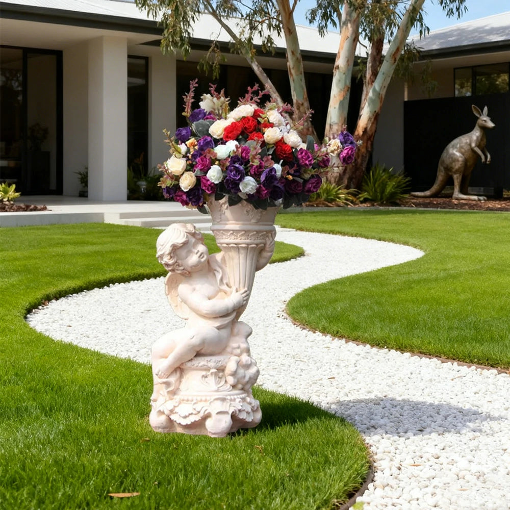 SOLARA 50cm Boy Angel Design Outdoor Planter UV-Resistant, Waterproof, Corrosion-Resistant, Durable for All Weather, Elegant Design for Gardens Patios
