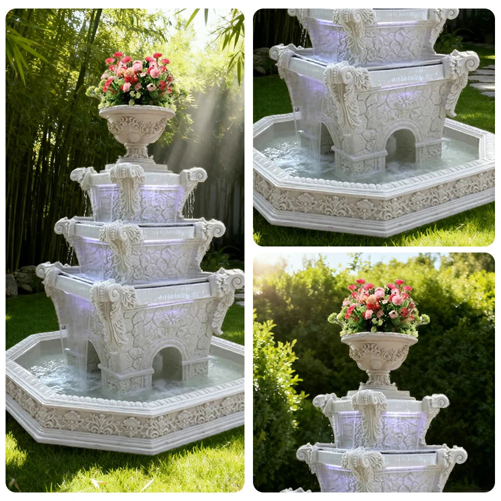 SOLARA Natural Sandstone Outdoor Fountain with 1.9m Fish Pond, Built‑In Pump, Smooth Finish, Elegant Garden Water Piece