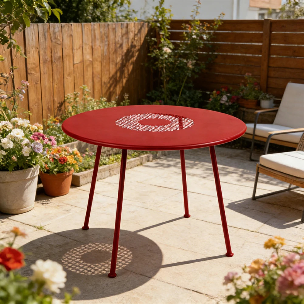SOLARA Outdoor Round Table Weather-Resistant Rust-Resistant Metal Frame Easy-Clean Design with Rounded Safety Edges - Red