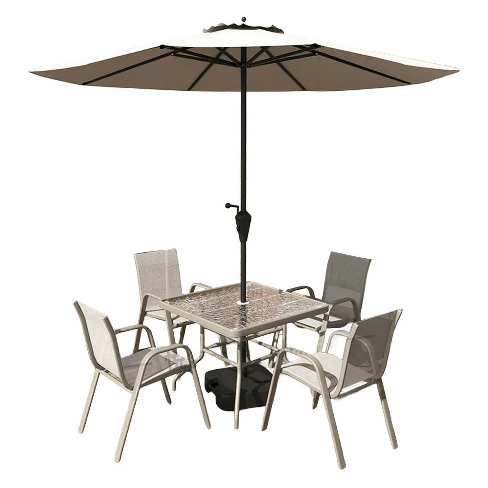 SOLARA Outdoor Table & Chair Set with Umbrella – Square Tempered Glass Table, Breathable Teslin Chairs, Sturdy Steel Frame - Khaki