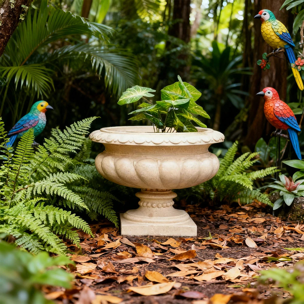 SOLARA Low Outdoor Planter Resin Fiberglass Sandstone UV-Resistant Waterproof Durable for All Weather Stylish and Practical Design