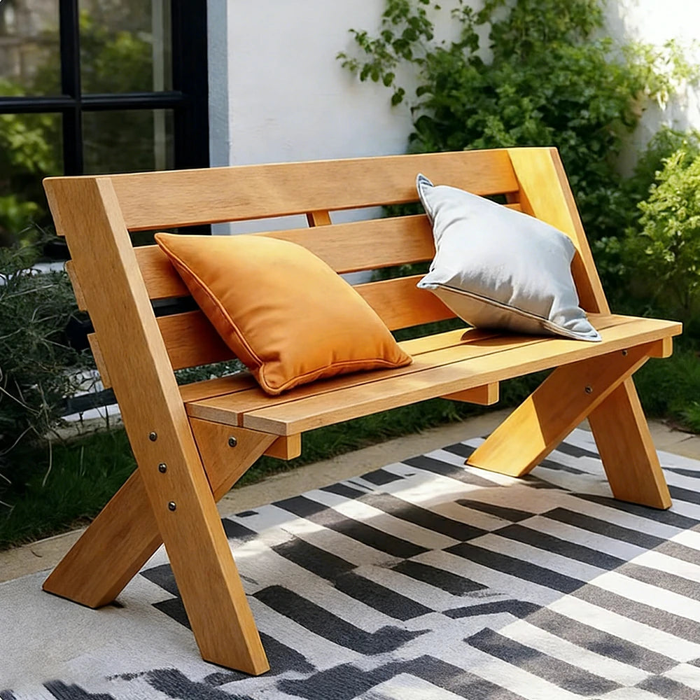 SOLARA 120/150cm Outdoor Two-Seater Bench - Heavy-Duty Solid Hardwood Construction, Reinforced X-Frame Support, Weather-Resistant Finish - Yellow