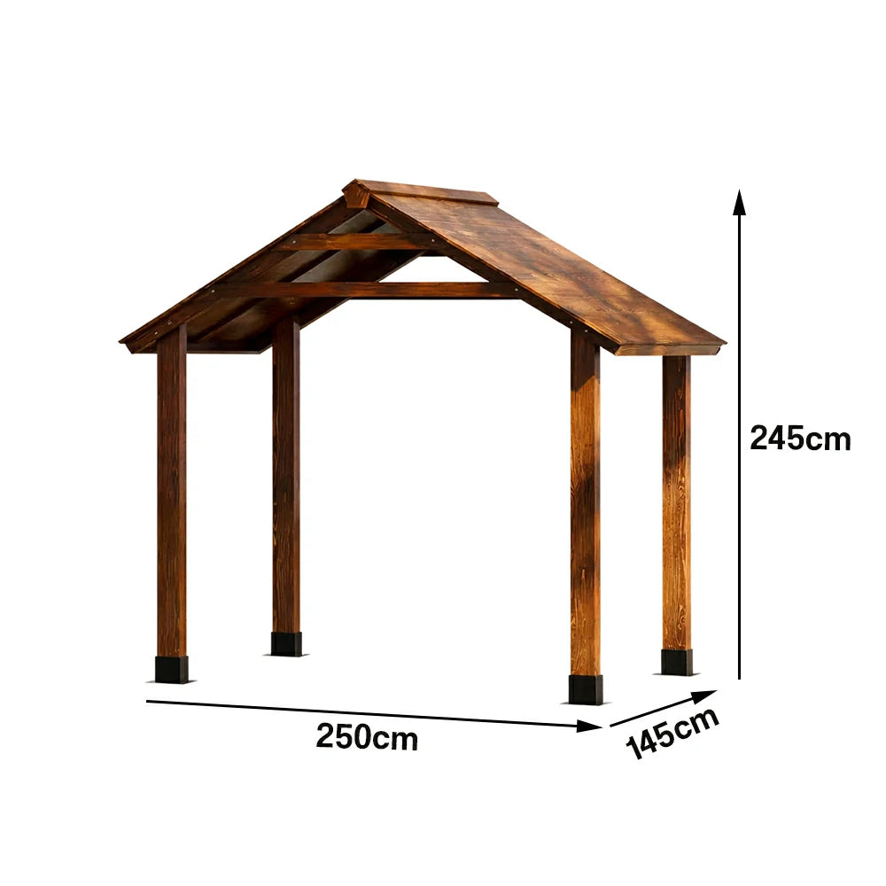 SOLARA Outdoor Garden Pavilion Water-Resistant Roof Solid Wood Frame Heavy-Duty Support Structure - Brown