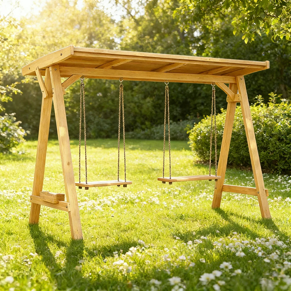 SOLARA 210/273cm Outdoor Swing Set with Canopy Triangular Frame Solid Pine Wood ACQ Treated Heavy-Duty Rope - Yellow