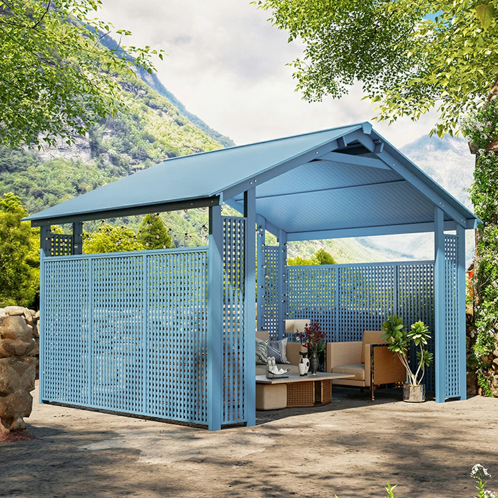 SOLARA Outdoor Pavilion - Large Heavy-Duty Gazebo with Reinforced Steel Frame & Hollow Side Panel Design - Blue