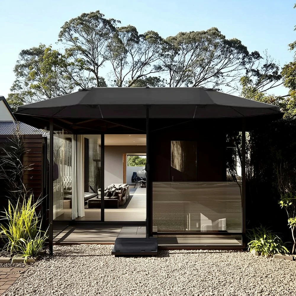 SOLARA Outdoor Patio Umbrella - 380/455cm Rectangular Canopy, Sunshade & Rain Protection, Heavy-Duty Frame, 60kg Water-Filled Base - Black