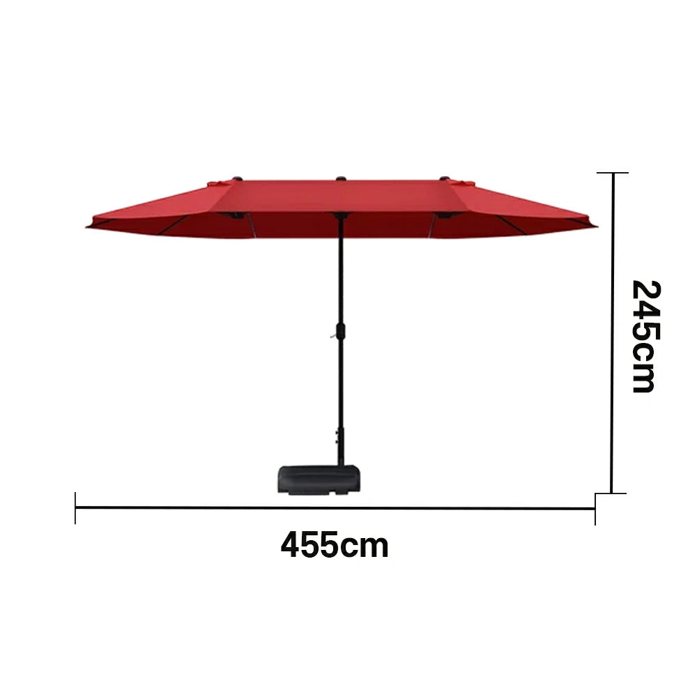 SOLARA Outdoor Patio Umbrella - 380/455cm Rectangular Canopy, Sunshade & Rain Protection, Heavy-Duty Frame, 60kg Water-Filled Base - Wine