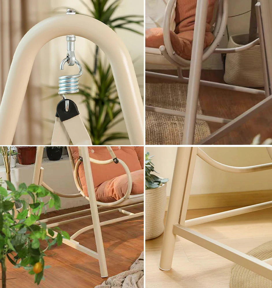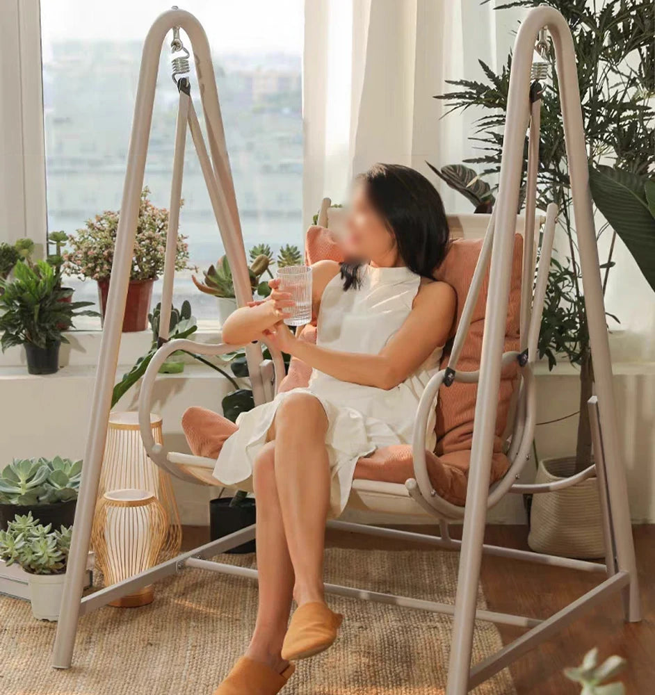 SOLARA Single Swing Chair - Sturdy Alloy Frame, Solid Wood Seat with Soft Cushion & Pillow, 100cm Outdoor Hanging Chair - Pink