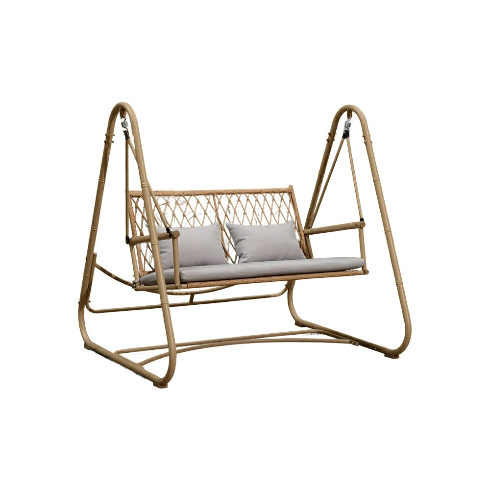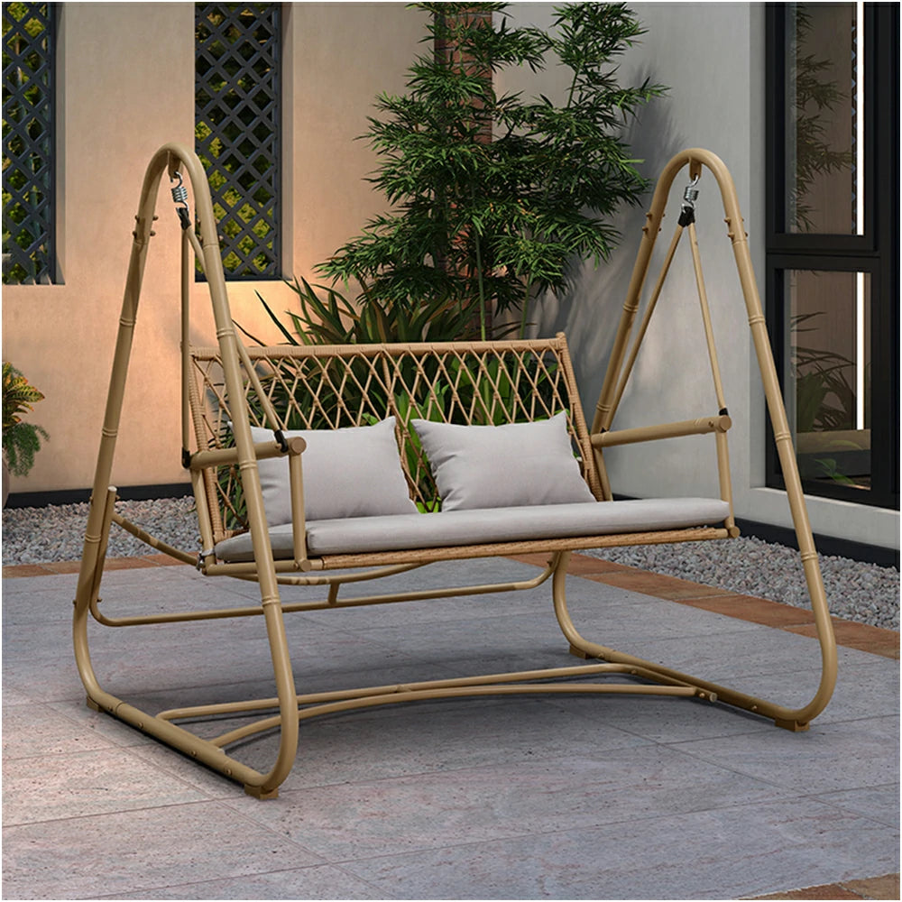 SOLARA Classic Single Swing Chair - Handwoven Bamboo Rattan Design, Durable Alloy Steel Frame, 148cm Relaxing Garden & Patio Seating - Yellow