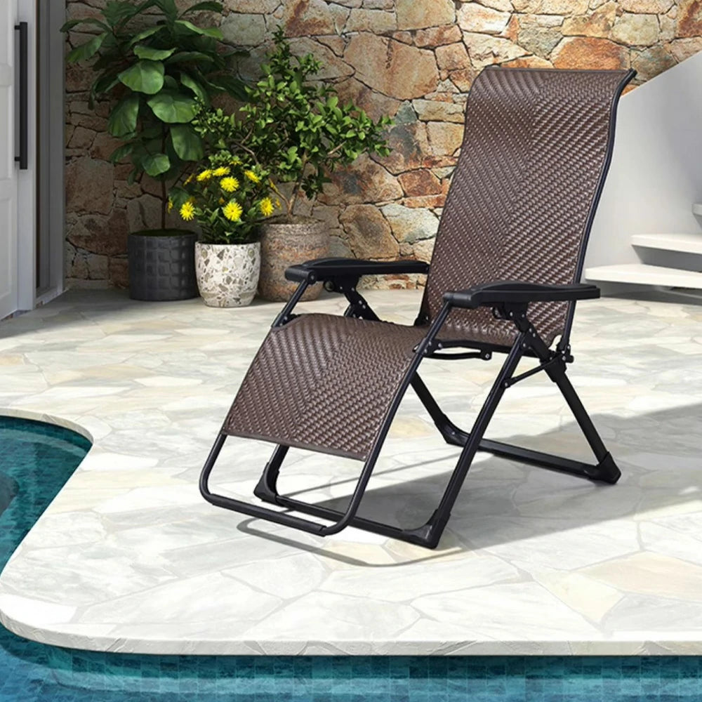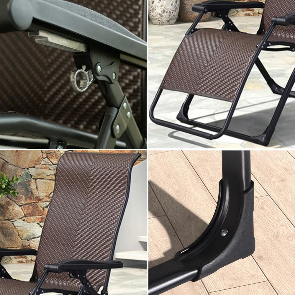 SOLARA Foldable Outdoor Lounge Chair – Solid Wood & PE Rattan, Adjustable Reclining Design, Space-Saving Storage, 150kg Max Load - Brown