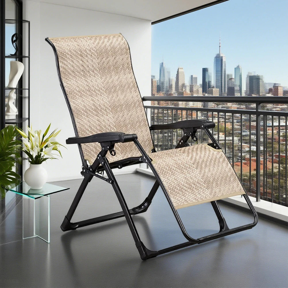 SOLARA Foldable Outdoor Lounge Chair – Solid Wood & PE Rattan, Adjustable Reclining Design, Space-Saving Storage, 150kg Max Load - White