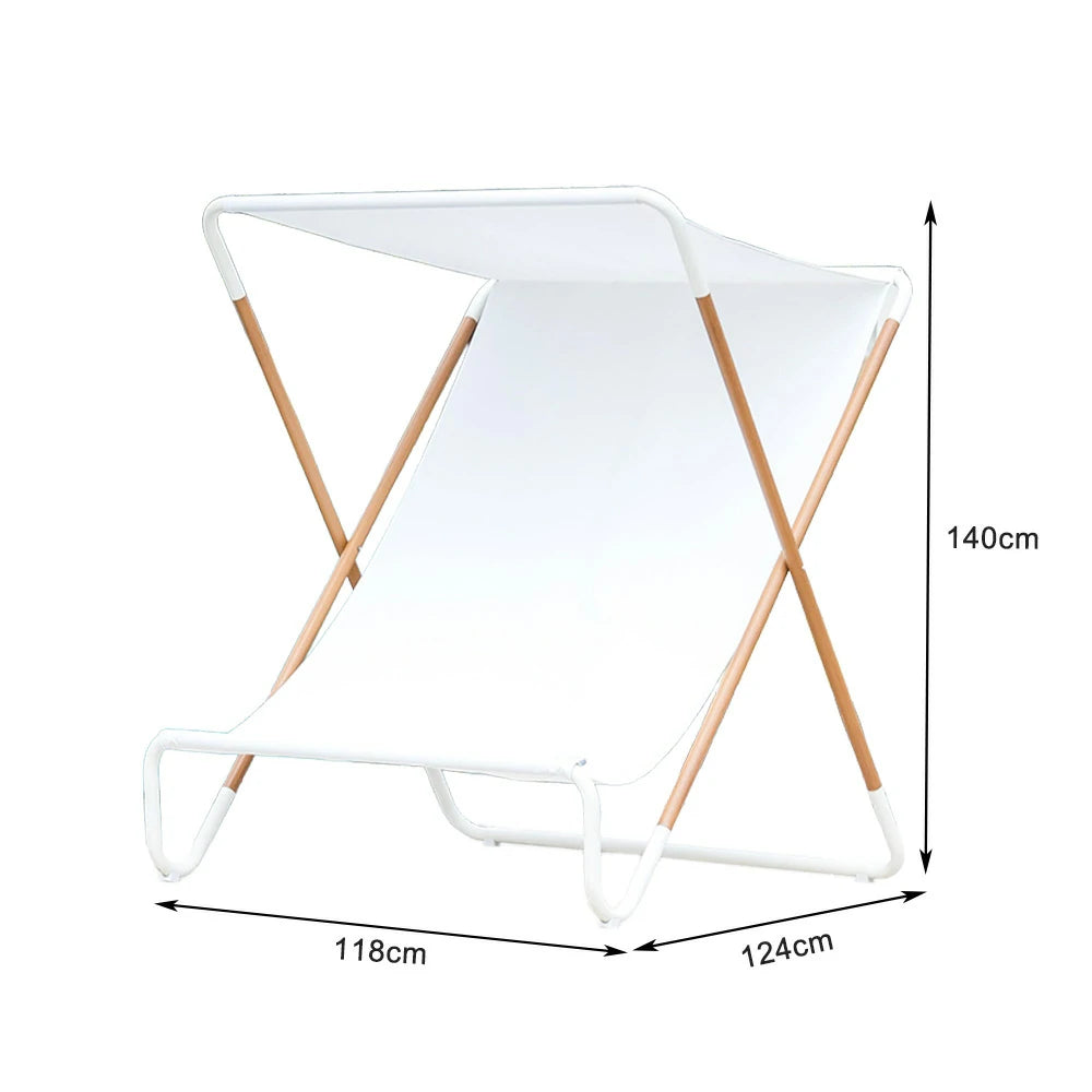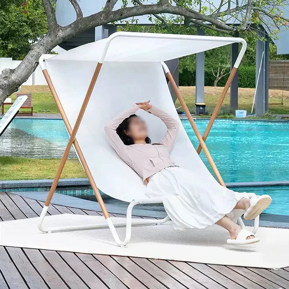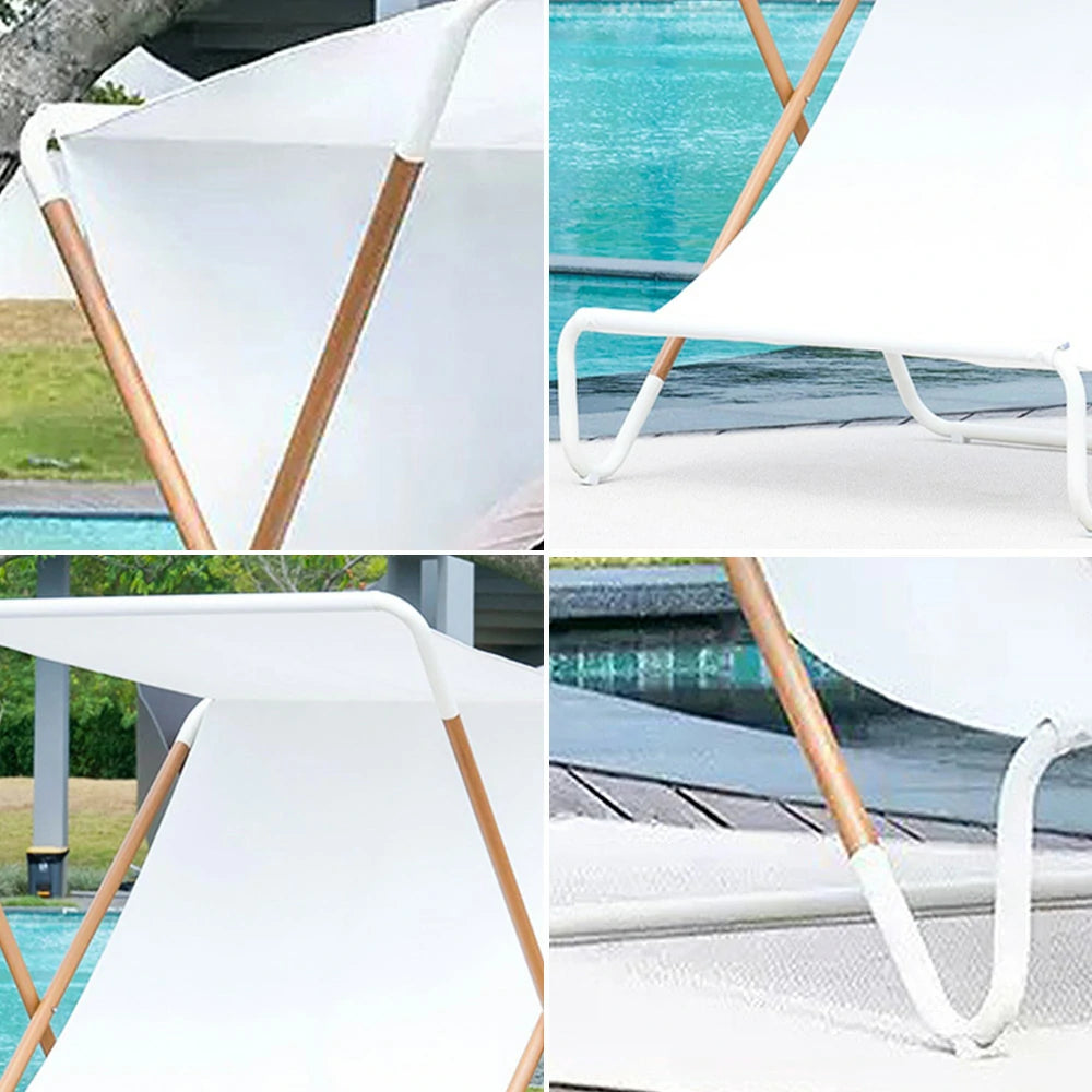 SOLARA Outdoor Folding Chair - Sunshade Design, Alloy Steel Frame, Patio & Garden Recliner, Waterproof Fabric - White
