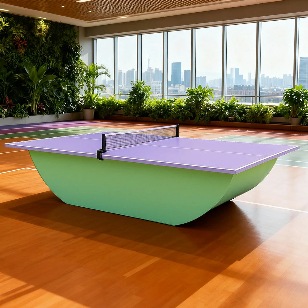SUNNET Outdoor Waterproof 4cm Table Tennis Pingpong Table with Heavy-Duty Base and Free Accessories - Purple & Green
