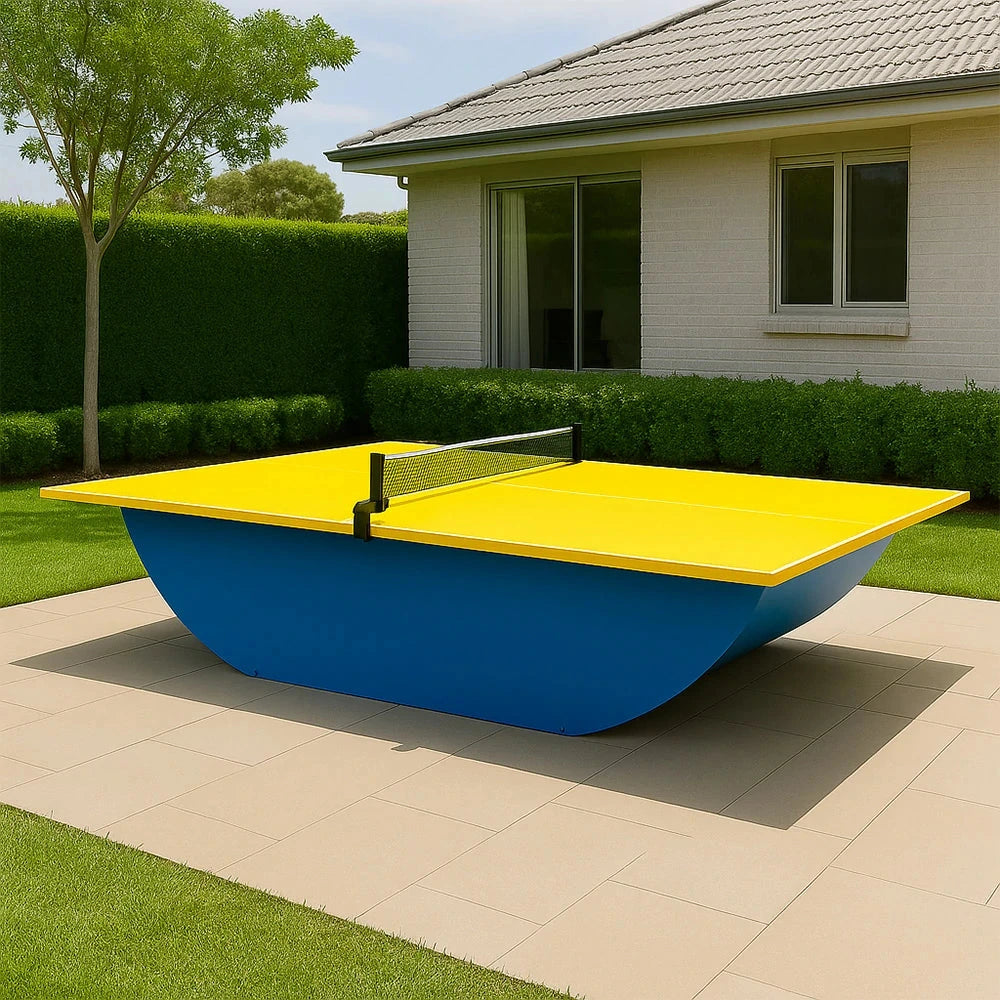 SUNNET Outdoor Waterproof 4cm Table Tennis Pingpong Table with Heavy-Duty Base and Free Accessories - Yellow & Blue