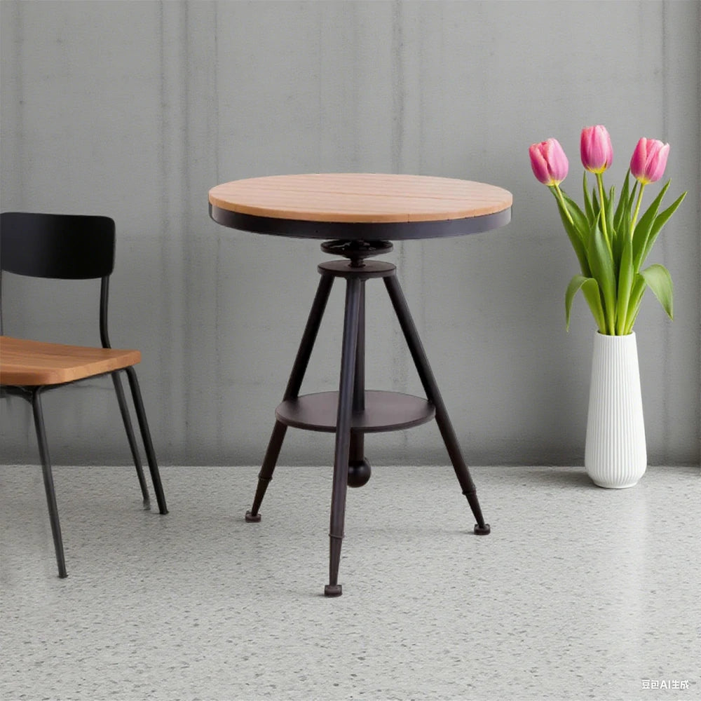 SOLARA Outdoor Dining Table, Adjustable Height, Black Frame with PS Wood Top, Rust-Resistant for Patio or Garden Use