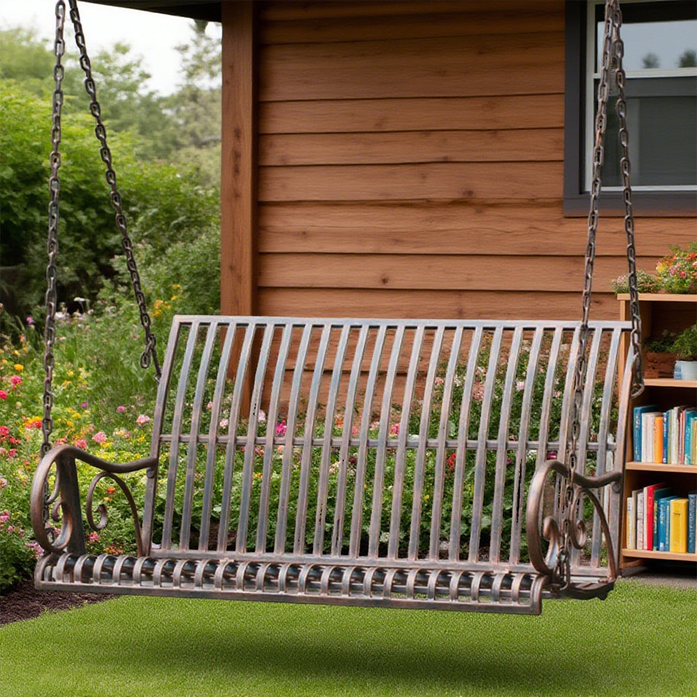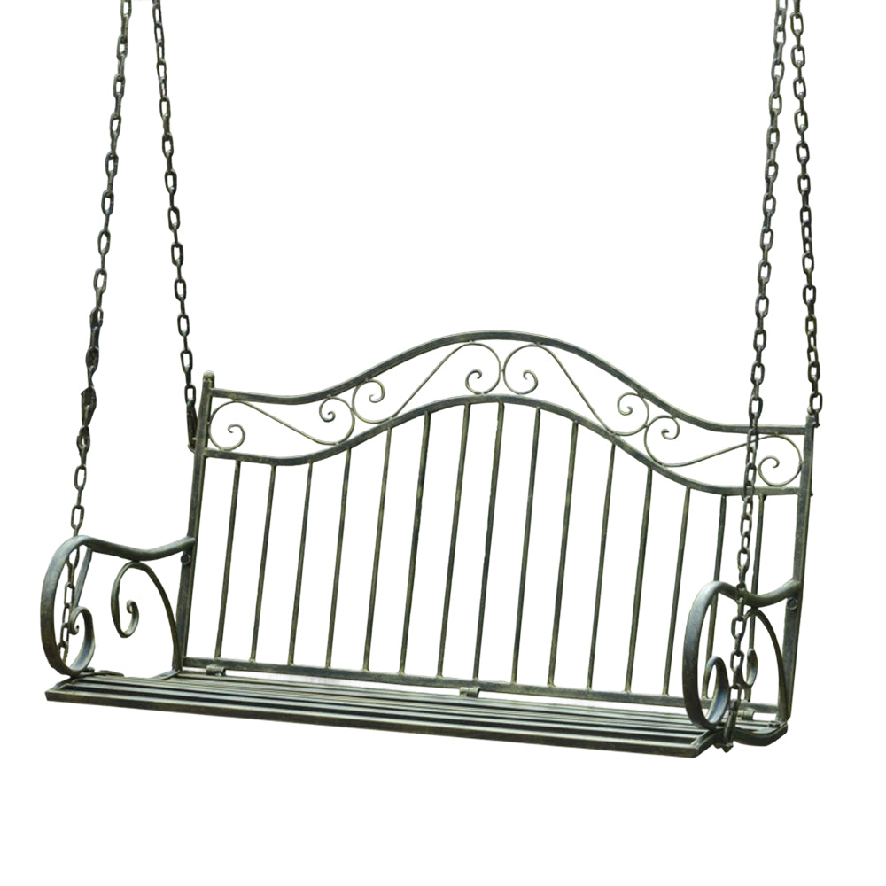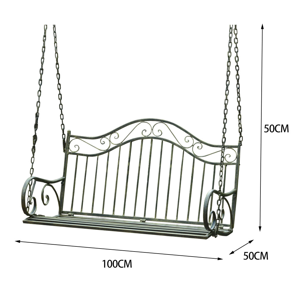 SOLARA YY02 100cm Wrought Iron Hanging Garden Chair – Brown/Green Straight Backrest Outdoor Use