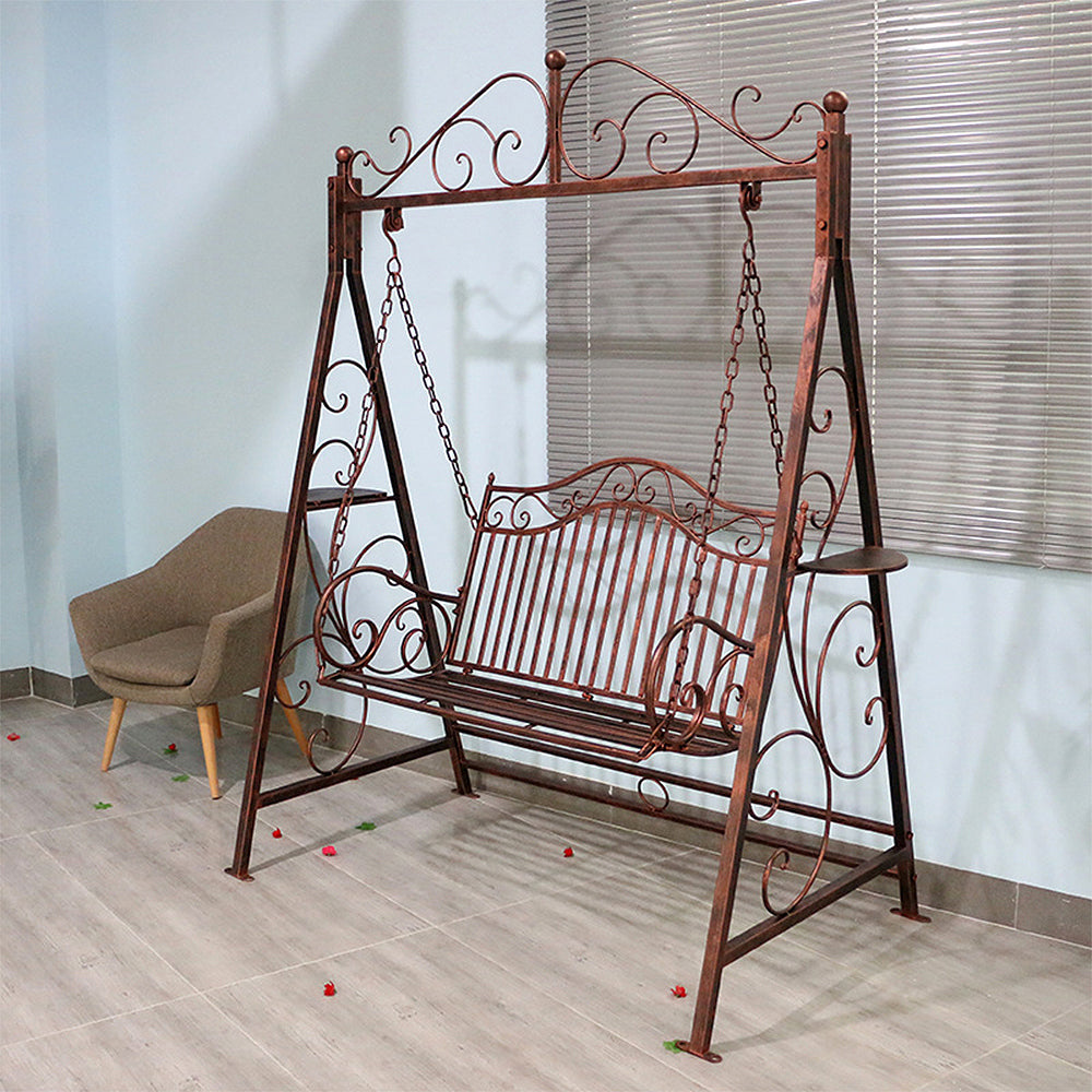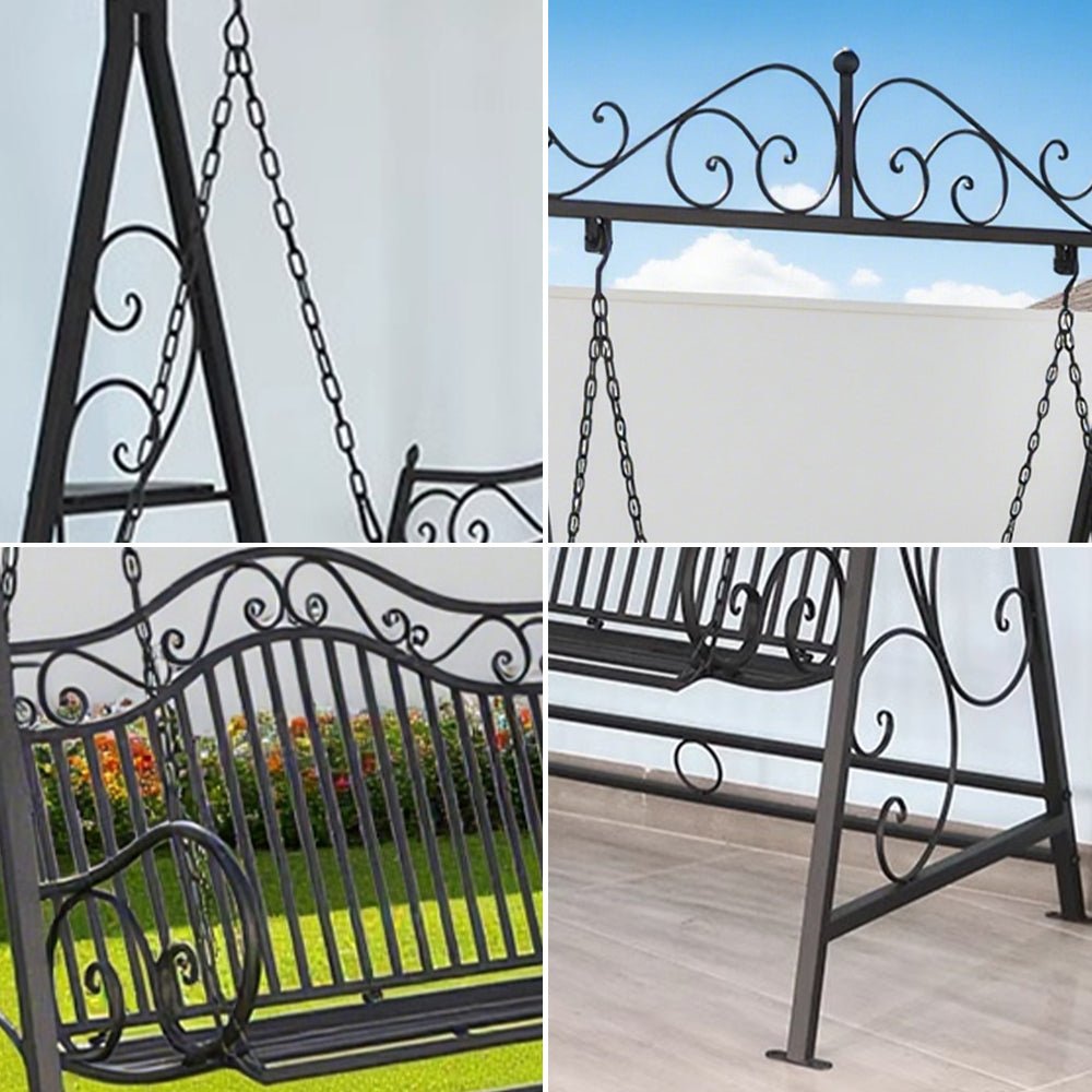 SOLARA YY02B 150cm Wrought Iron Garden Swing Chair – Black/White/Red/Green Straight Backrest Outdoor Use