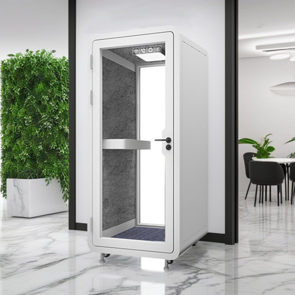 MODERA 1x1m Movable Indoor Soundproof Booth W/ Light, Workbench, Carpet - White