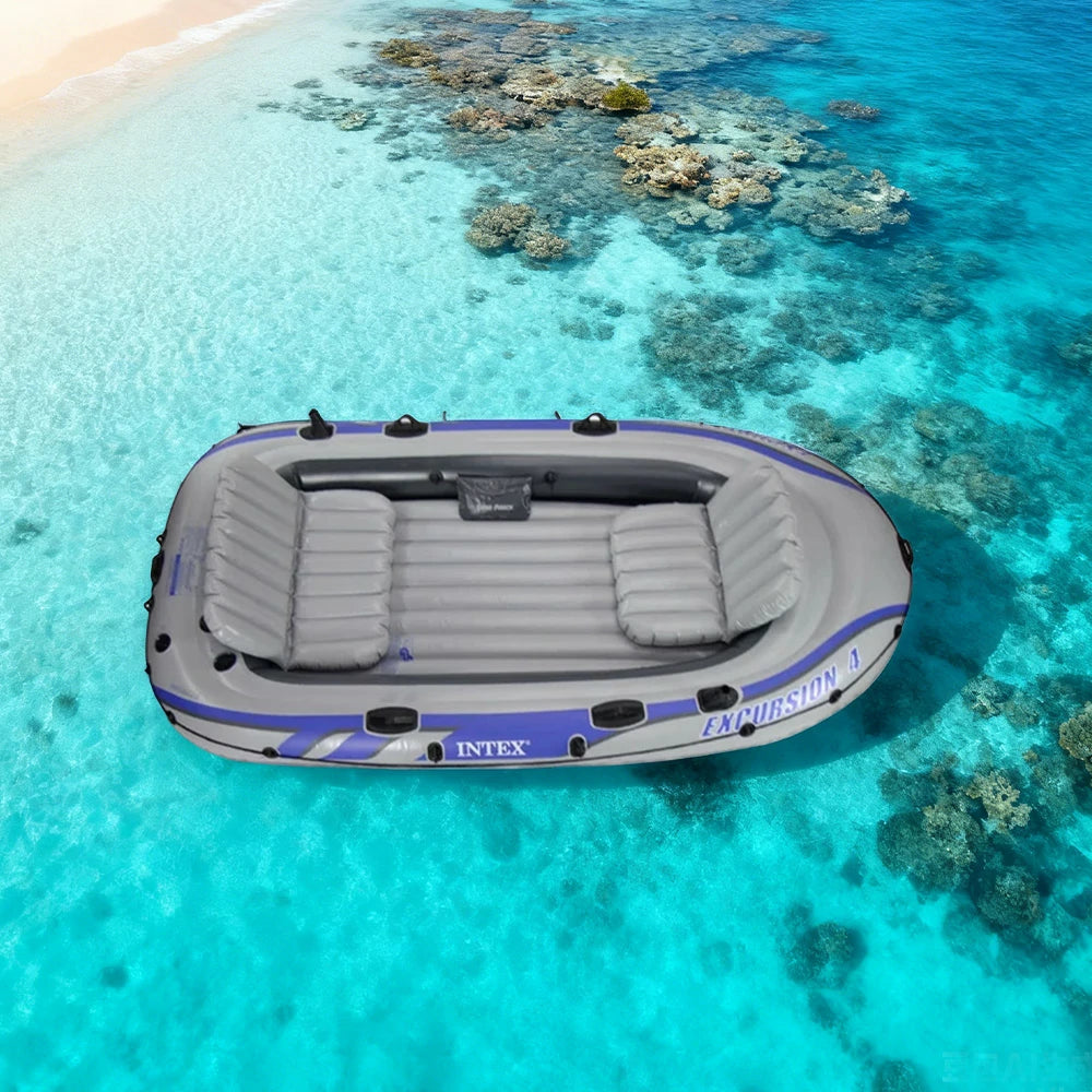 TREKKA 4-Person Inflatable Kayak Tri-Air-Chamber Design Motor-Ready I-Beam Floor Soft Grab Rope Stable Support for Fishing & Recreation